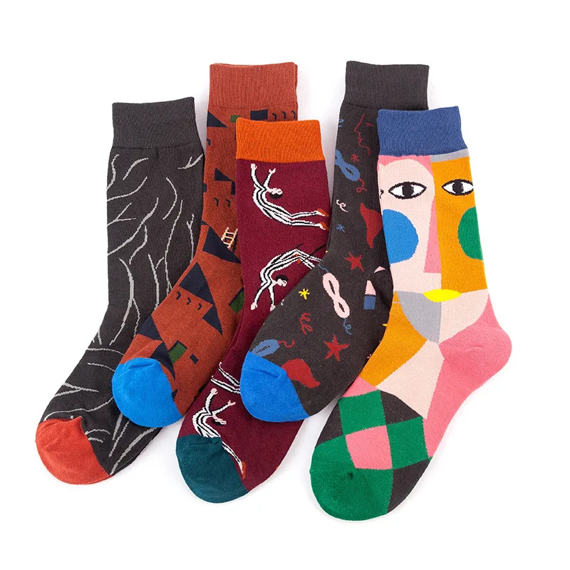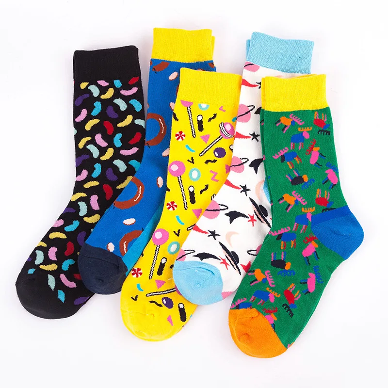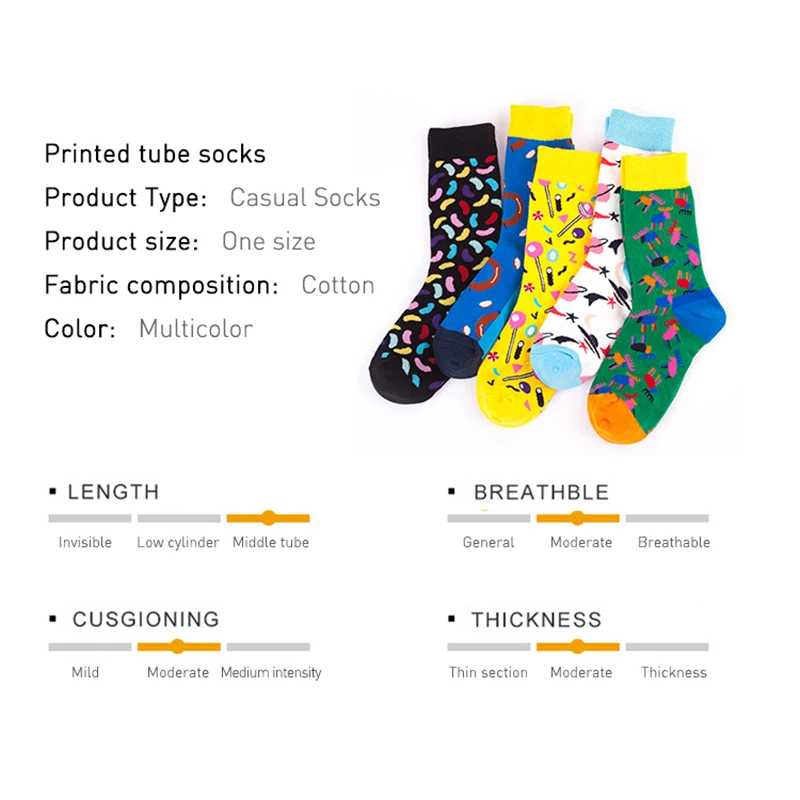 Осенние Хлопковые женскиемужские носки с принтом разных видов, веселые Модные Винтажные повседневные Мультяшные носки в стиле Харадзюку, смешные носки с узором еды