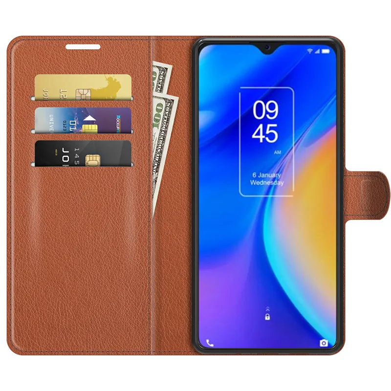 Для TCL 20 SEИз искусственной кожи чехол роскошный Магнитный Флип-кошелек с рисунком личи держатель для карт чехол для телефона