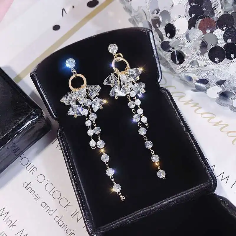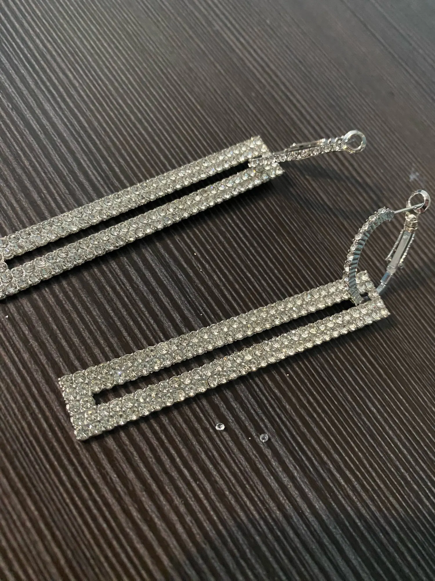 Модные длинные геометрические серьги-подвески, роскошные золотистые и Серебристые прямоугольные серьги Стразы для женщин, ювелирные изделия для вечеринок, аксессуары