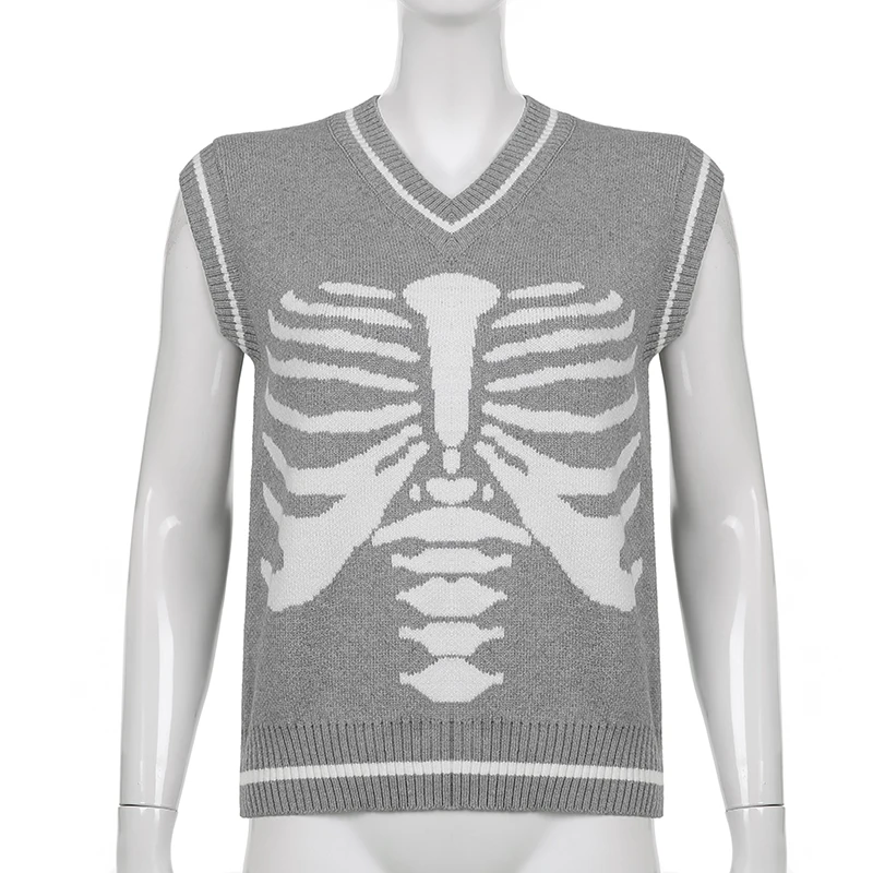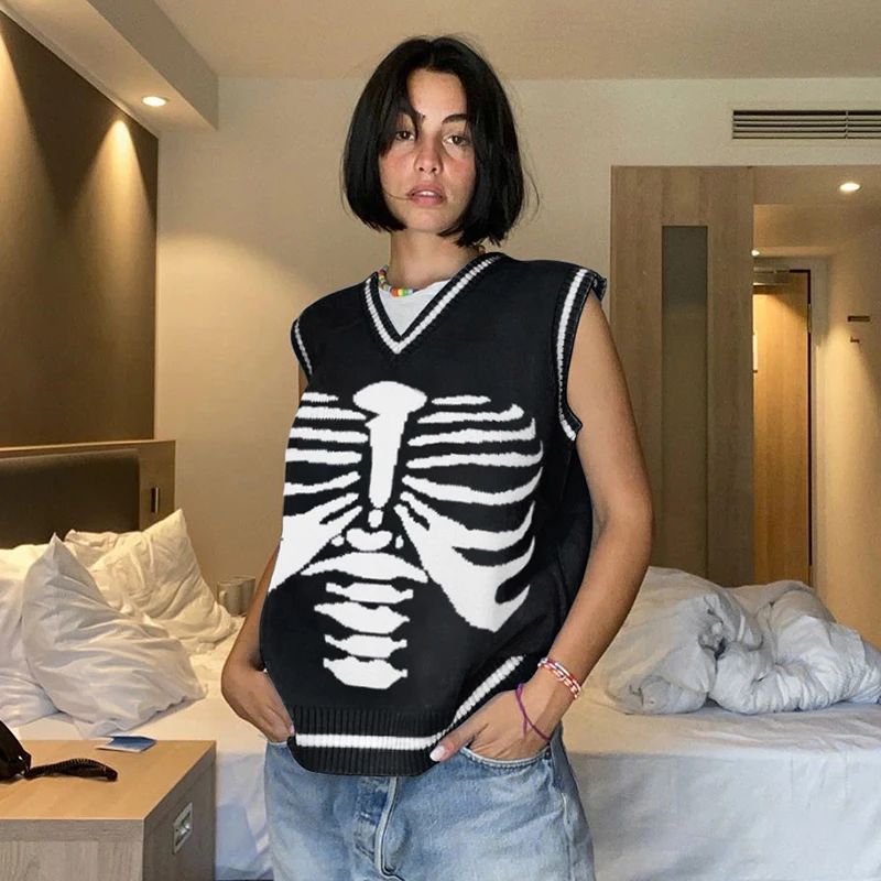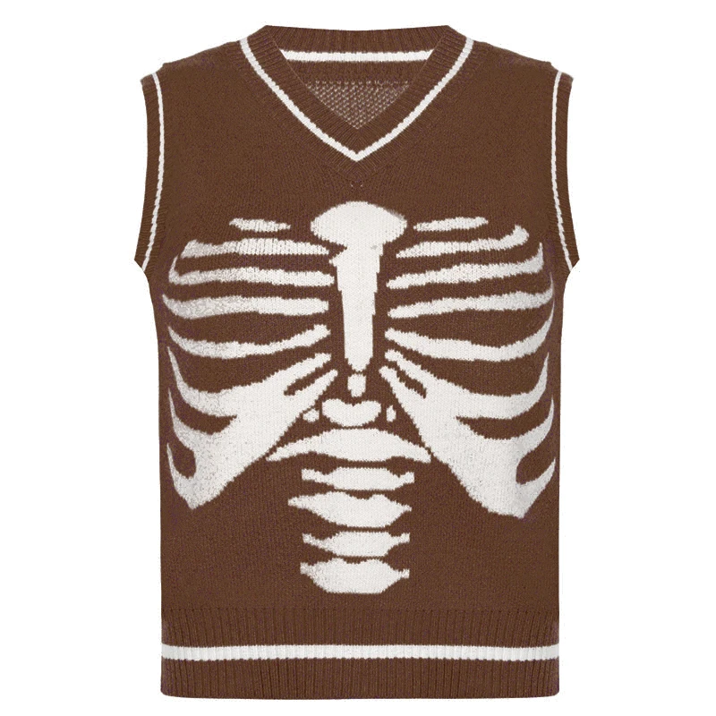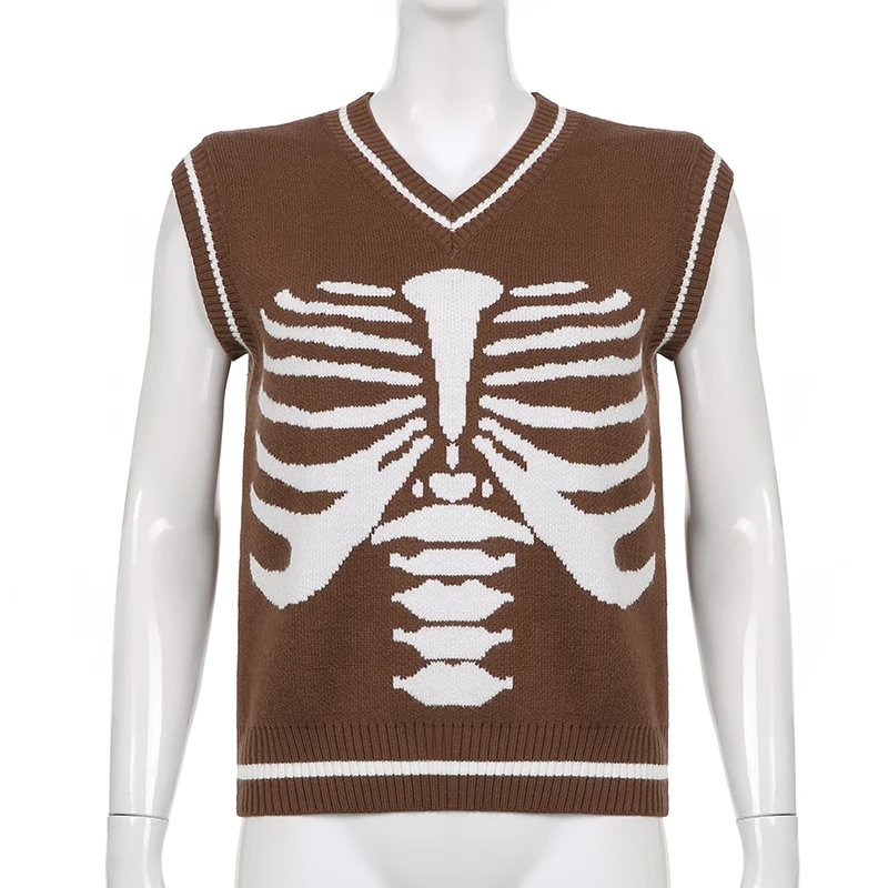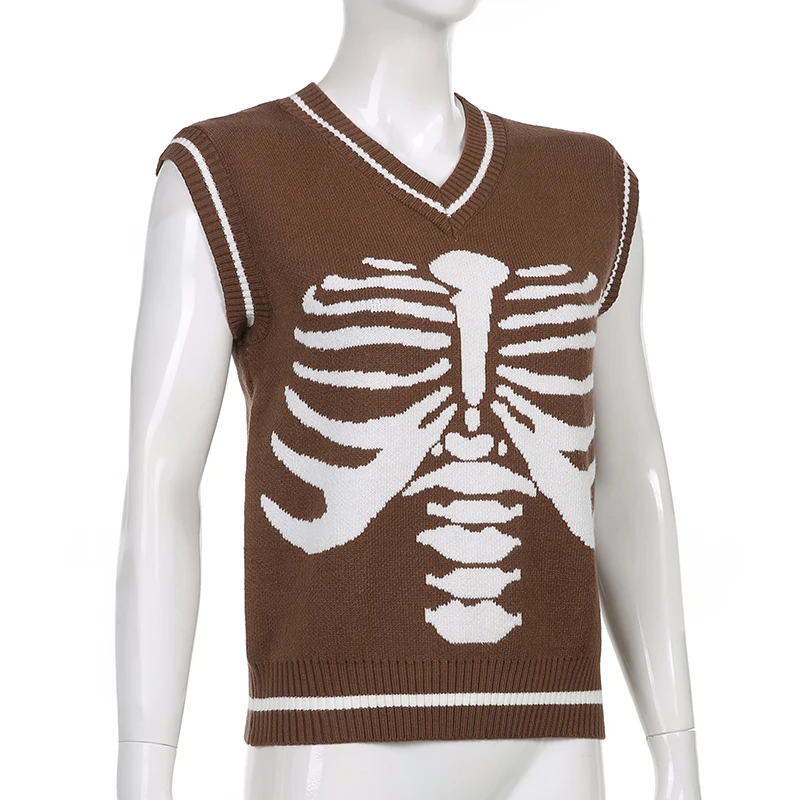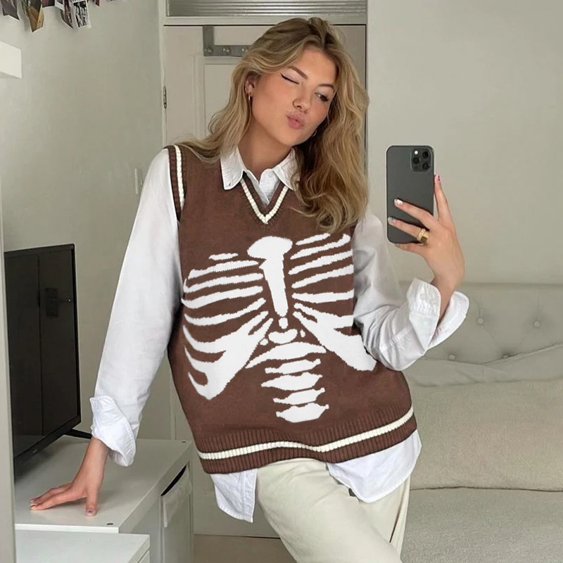 Свитер Darlingaga в уличном стиле с принтом скелета в готическом стиле, модный осенний пуловер в Корейском стиле, женские коричневые вязаные свитера, джемперы