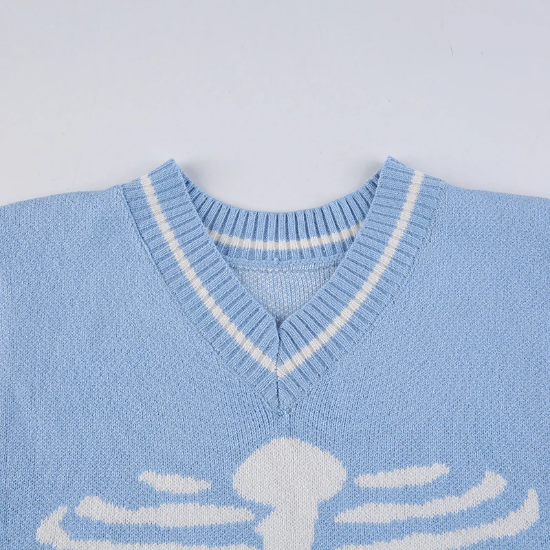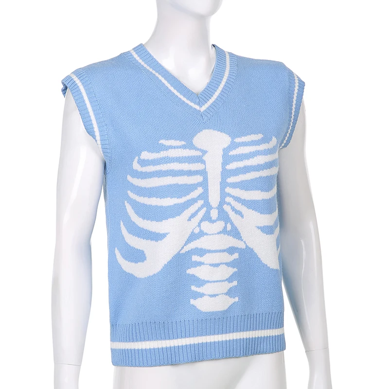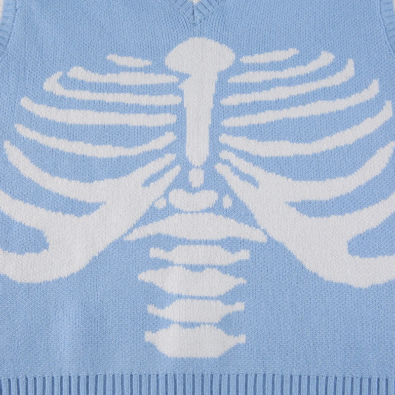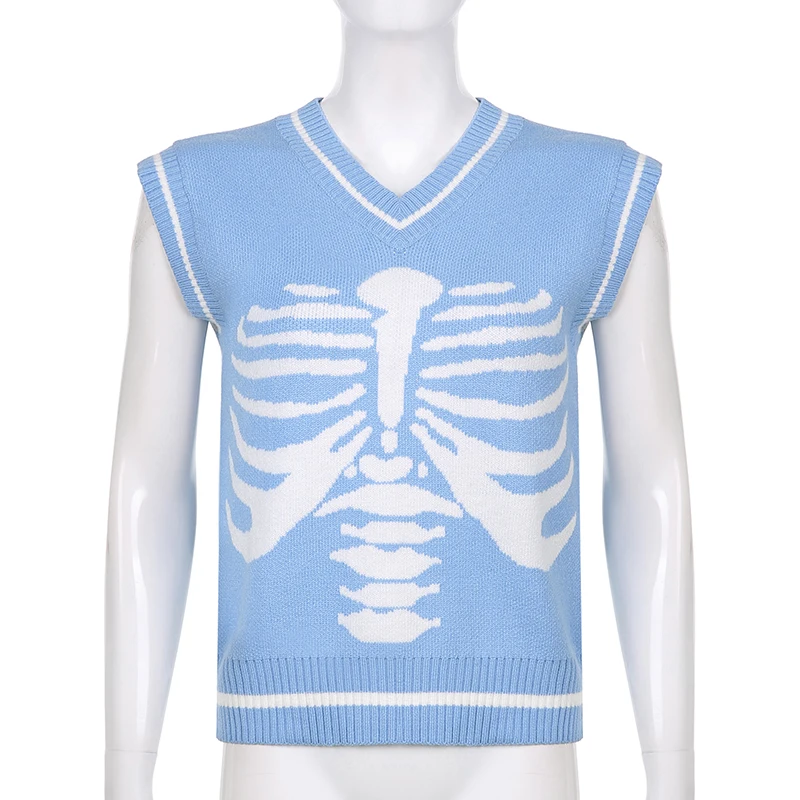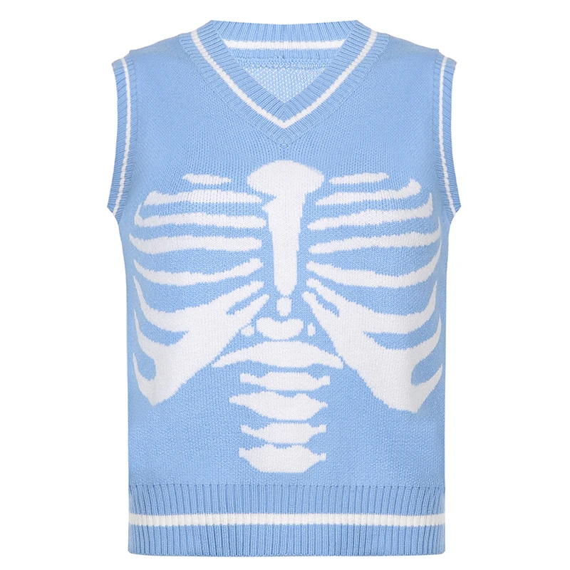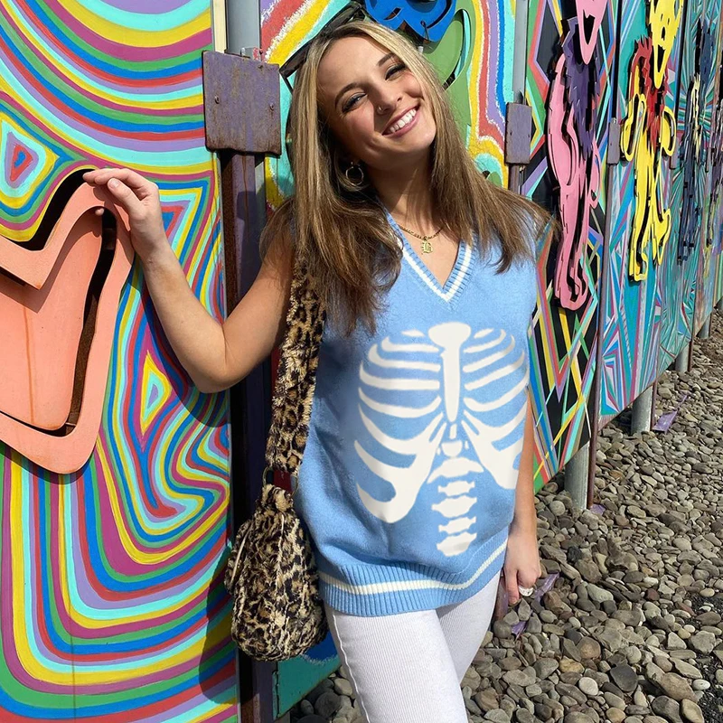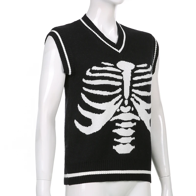 Свитер Darlingaga в уличном стиле с принтом скелета в готическом стиле, модный осенний пуловер в Корейском стиле, женские коричневые вязаные свитера, джемперы