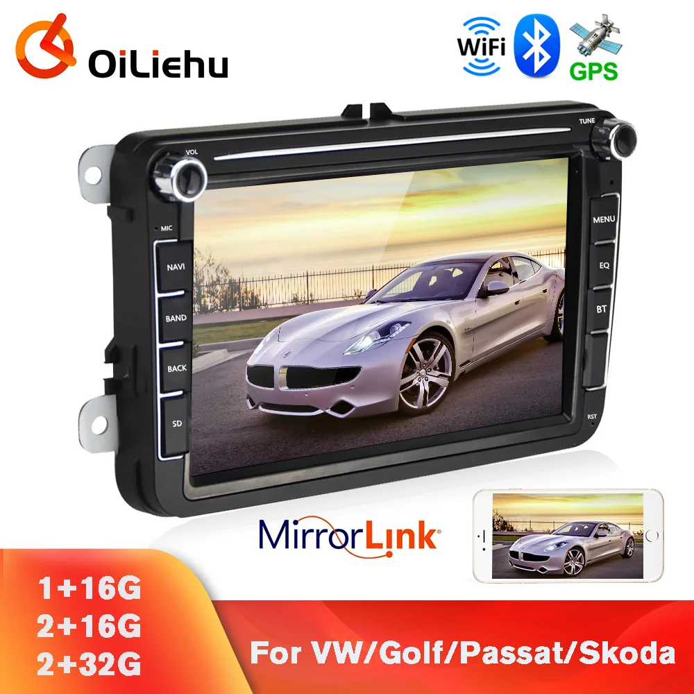 Автомагнитола OiLiehu, 2 din, Android 8,1, GPS, мультимедийный плеер, стереоприемник для VWVolkswagenGolfPassat b6b7SkodaSeatTiguan