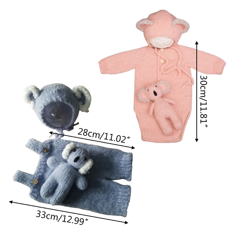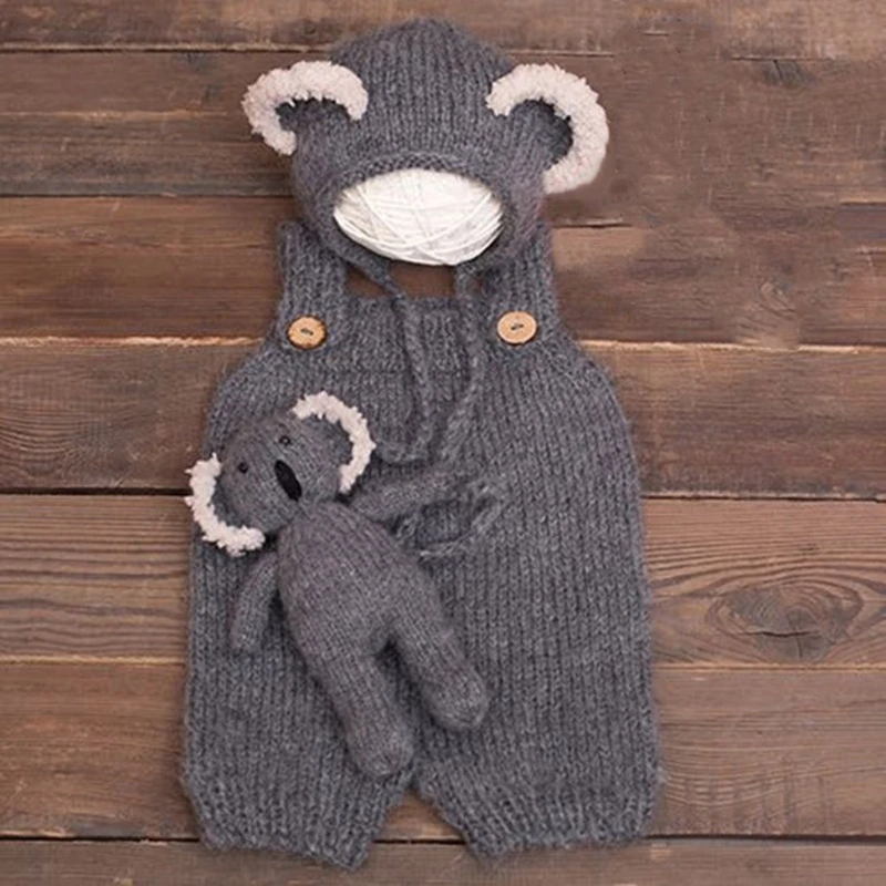 N7ME 3 шт./компл. костюм для фотосессии новорожденных Вязаный комбинезон с шапочкой чучело коала кукла игрушка для младенцев