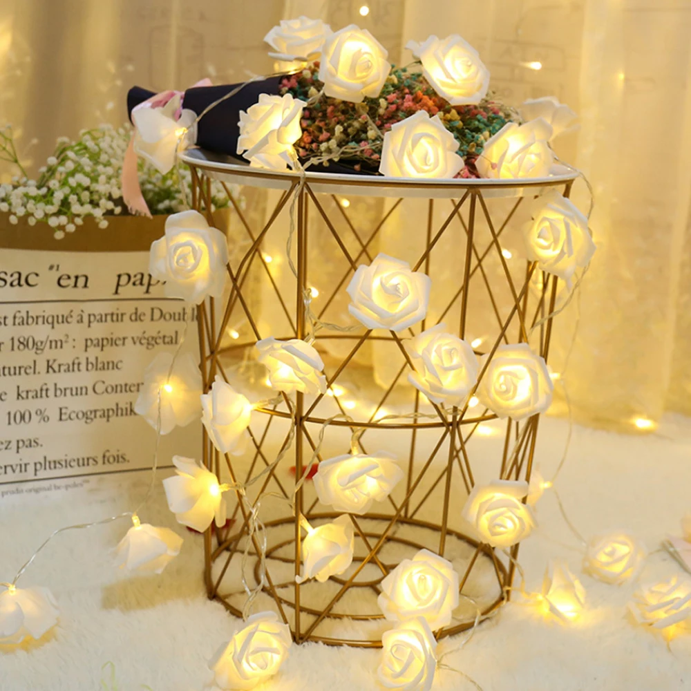 2. Это роза цветок батарея строка светильник, всего 10/20/60 Светодиодный ламп с четким кабелем и контейнер под элемент питания.