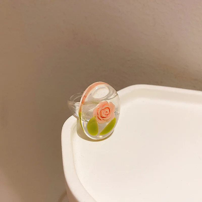 Кольцо с натуральным ветром и акриловым цветком sen-это маленькое и свежее кольцо на указательный палец, красное, милое, темпераментное, простое индивидуальное кольцо