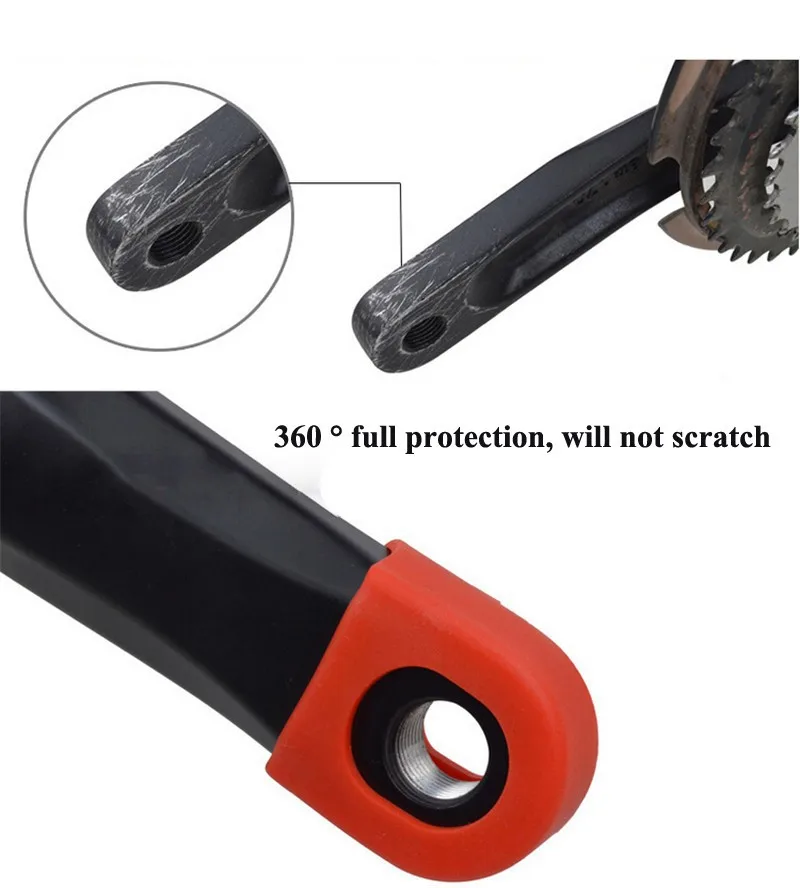 Подходит для 95% наборов кривошипов и комплектов цепных колецМягкий резиновый материал предотвращает появление царапинОдна штука = две