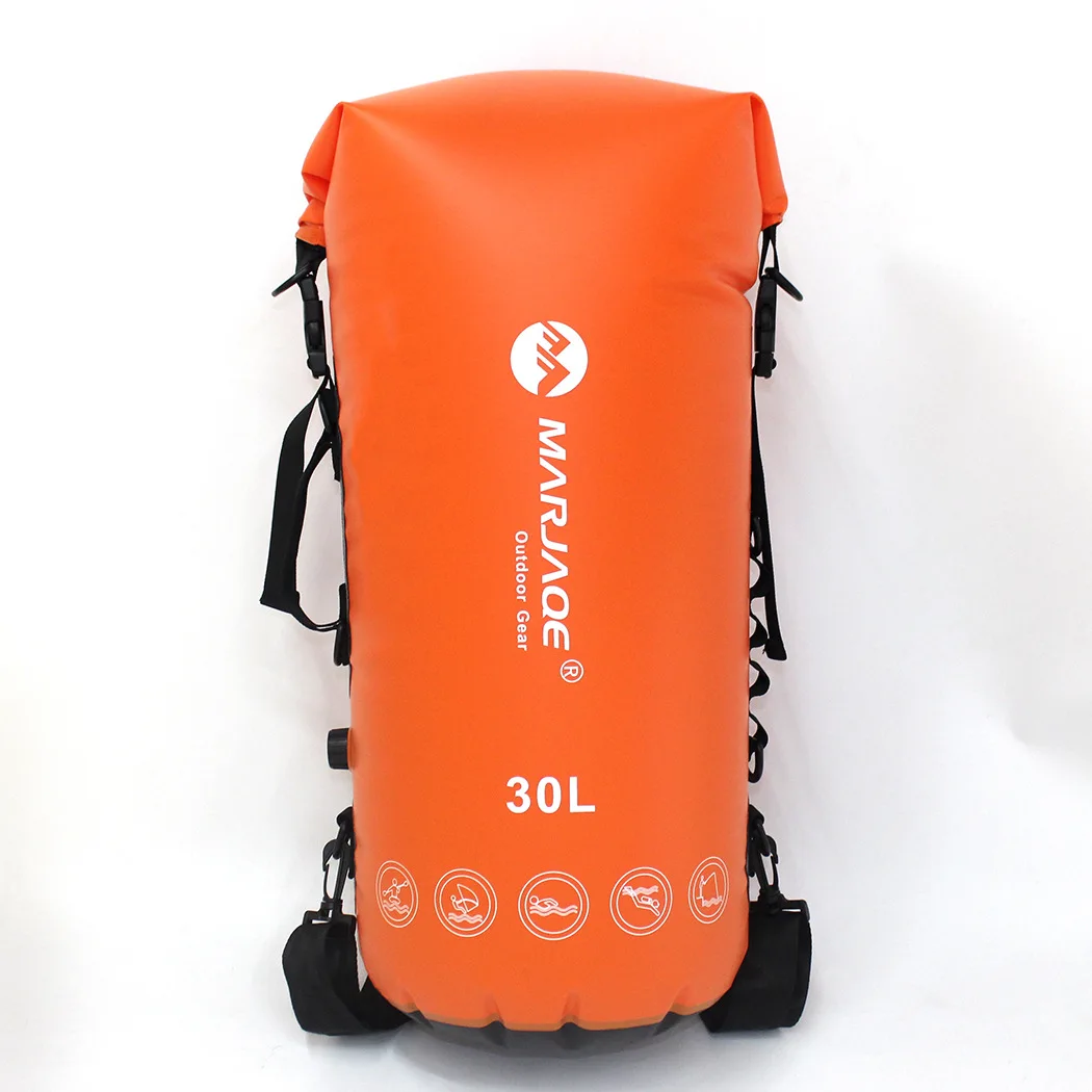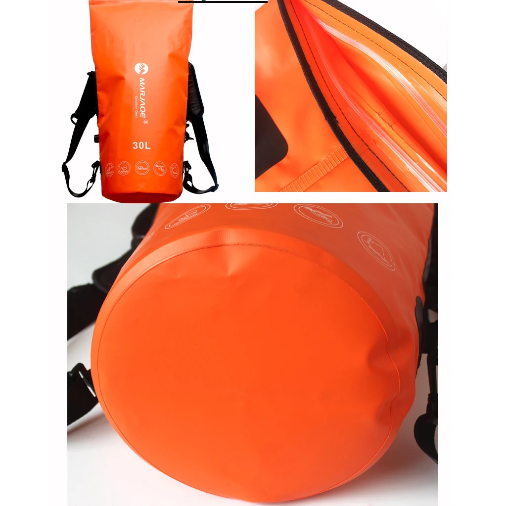 # Прочный водонепроницаемый ПВХ материал# Легкий и легко носить как сухой мешок из воды.# Подходит для плавания, подводного плавания, гребня, других водных видов спорта.# Яркий оранжевый цвет позволяет легко видеть в воде и выступает в качестве маркера для лодок.