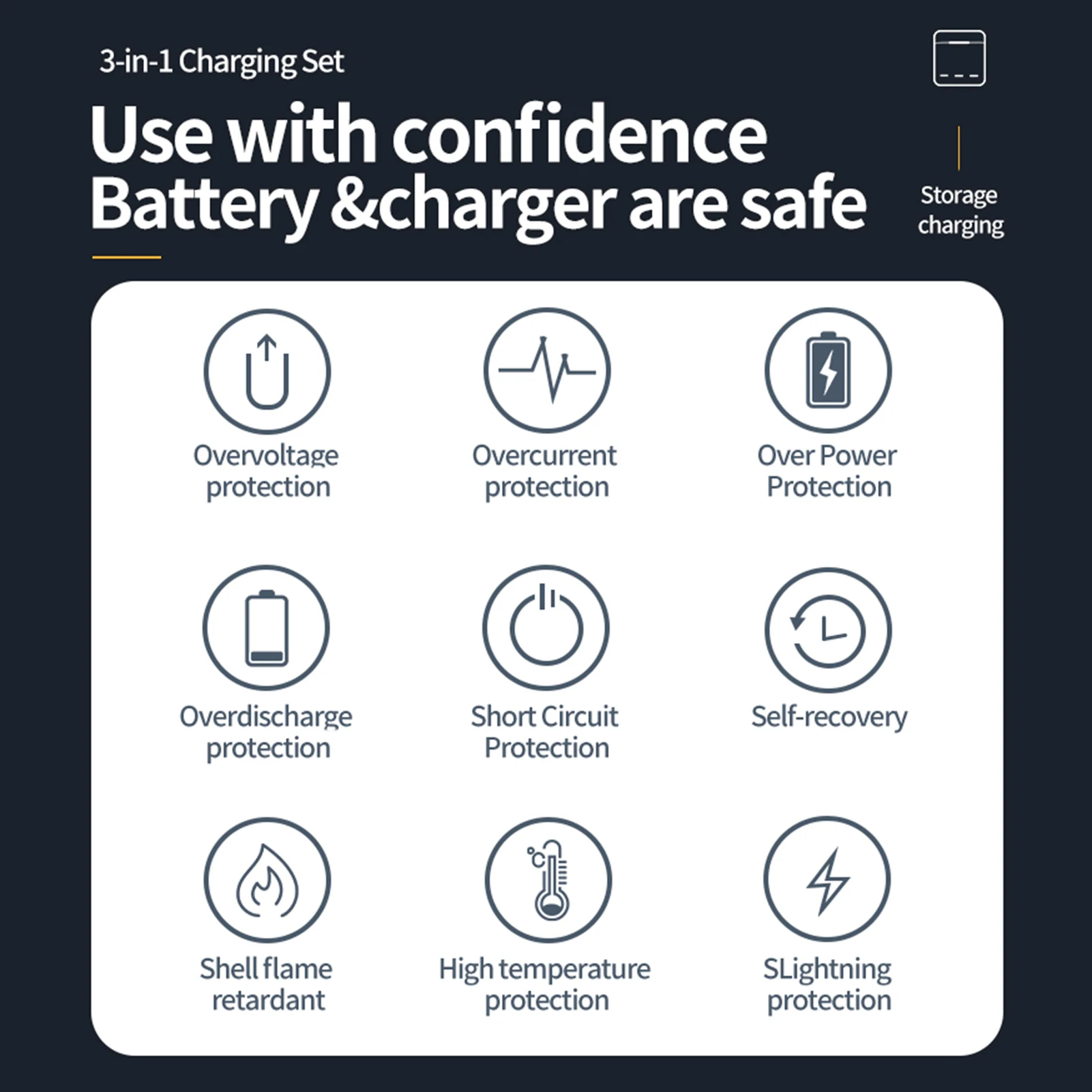 1. Идеально подходит для Gopro Hero 9: устройство для зарядки аккумулятора не выскакивает, специально разработано для Gopro Hero 9 зарядки камеры, хранения и зарядки встроенный умный менеджер батареи, может заряжать три батарейки в одно и то же время, 2.4A высокий ток быстрая зарядка, 2,5 H полной зарядки, Остановитесь при полной зарядке, держите камеру дольше.2. Стильный и компактный внешний вид: уникальный дизайн делает его выделяться. Это компактное и легкое зарядное устройство можно хранить в рюкзаке/сумочке для камеры/багаже, так что зарядное устройство можно легко повесить на рюкзак или на заднюю часть вашей руки, который очень подходит для камеры GoPro 9!3. Материал высокого качества: принимается Магнитная защитная крышка, которая проста и быстро работает. Нескользящая силиконовая накладка делает использование более интимным. Все материалы экологически чистые и не загрязняющие окружающую среду!4. Безопасная зарядка и множественная защита: зарядное устройство поддерживает защиту от перезаряда, короткого замыкания и переразряда, перегрева, перегрузки по току и перенапряжения, обеспечивая вам и вашему оборудованию комплексную защиту.5. Многофункциональный дизайн: вы можете использовать его в качестве зарядного устройства для зарядки 3 аккумуляторов GoPro Hero9 одновременно и в качестве ящика для хранения 3 батарей и 2 карт памяти. Посылка: 1 Зарядная коробка, 2 аккумулятора и 1 зарядный кабель. Примечание: карта памяти не включена в посылка!Характеристики:Название: Выдвижной комплект зарядного устройства для Hero 9Выдвижное Зарядное устройство:Материал: экологически чистый материал ABSЦвет: черныйПодходящие модели: для Gopro Hero 9Вход: 5V-2.4AВыход: 4,4 V 800 мАч * 3Время полной зарядки: 2,5 hРазмер зарядного устройства: около 105*124*56 мм/4,13*4,88*2,20 дюймовУстойчивый зеленый светильник: полностью заряженныйЖелтый светильник всегда горит, синий светильник дышит: почти полный.Желтый светильник всегда включен, синий светильник дышит: зарядка.Синий индикатор питания Светильник всегда горит: в режиме ожидания без нагрузки.Функция: четко показывает состояние зарядки аккумулятора, идеально подходит для быстрой зарядки аккумуляторов Gopro 9 и может вместить две карты памяти и три батареи одновременно!Безопасность: Защита от перенапряжения, защита от перегрузки по току, защита от перегрузки, защита от разрядки, защита от короткого замыкания, защита от восстановления!Полимерная литиевая батарея (2 упаковки):Номинальная емкость: 1750 мАч 5.0WhМощность аккумулятора: 3,8 в/1.2AМощность аккумулятора: 3,8 в/1.2AВес нетто: около 33 гРазмер батареи: около 4.1x3.4x1 3 см/1.61x1.34x5.12 дюймовУпаковочный лист:Выдвижная зарядная коробка * 1Аккумулятор для Hero 9*2Кабель для зарядки типа C * 1Руководство * 1Упаковочная коробка * 1