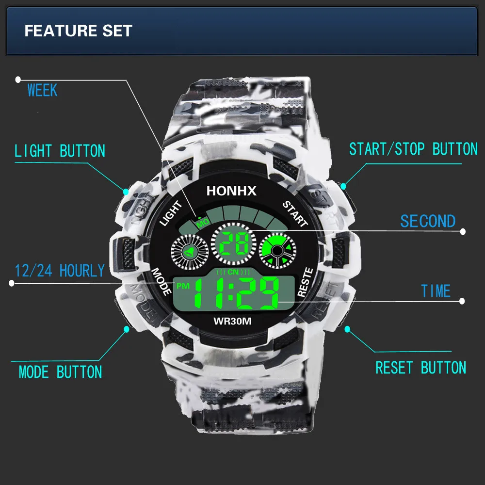 Часы наручные мужские цифровые светодиодные, модные спортивные в стиле милитари, автоматические, с резервным питанием