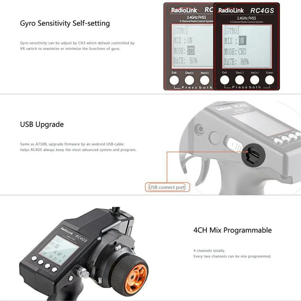 Бесплатная доставка RadioLink RC4GSRC6GS V2 R7FG R6FG каналы 6CH Dual Mix программируемый 600 м 400 м заземление расстояние гироскоп встроенный