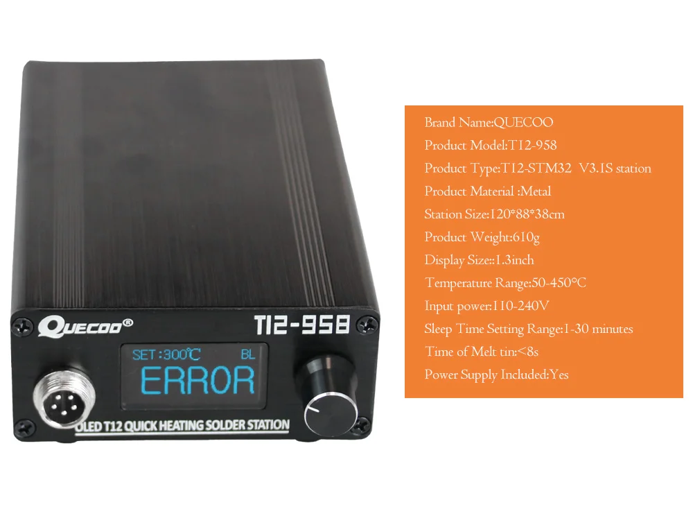Паяльник, используемый в этой паяльной станции, представляет собой новое жало паяльника. Из-за нестабильного сопротивления нового наконечника паяльника температура может скачиться или погрешность, что является нормой. После нескольких раз использования стабильность постепенно стабилизируется. Если вы возражаете, пожалуйста, не покупайте.