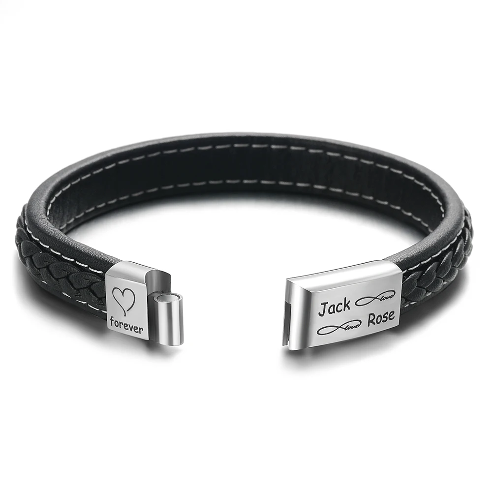 Плетеный мужской браслет из натуральной кожи, с именем и датой