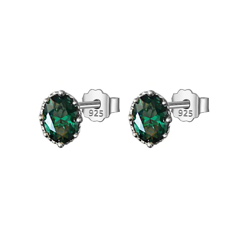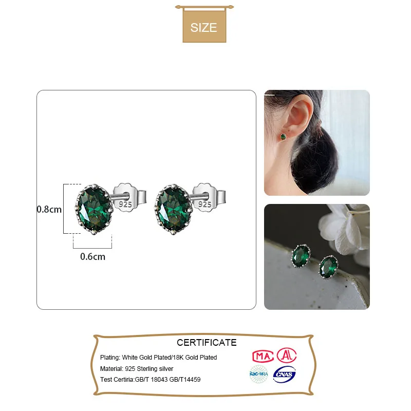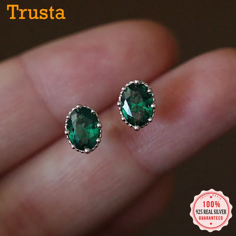 TrustDavis настоящая Серебряная Мода Эллипс зеленый CZ камень очаровательные серьги-гвоздики для женщин Свадебная вечеринка Изящные Ювелирные изделия DB1406