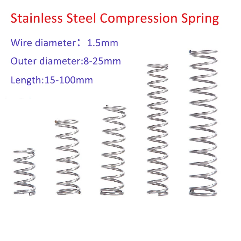 10 шт. 1,5 мм телескопическая пружина, пружинные товары, пружинная линия, диаметр 1,5 мм, диаметр проволоки OD 8 до 25, нержавеющая сталь