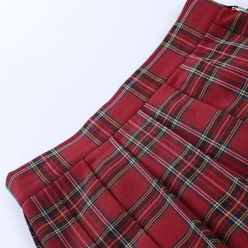 Юбка-мини плиссированная в клетку, с высокой талией и цепочкой