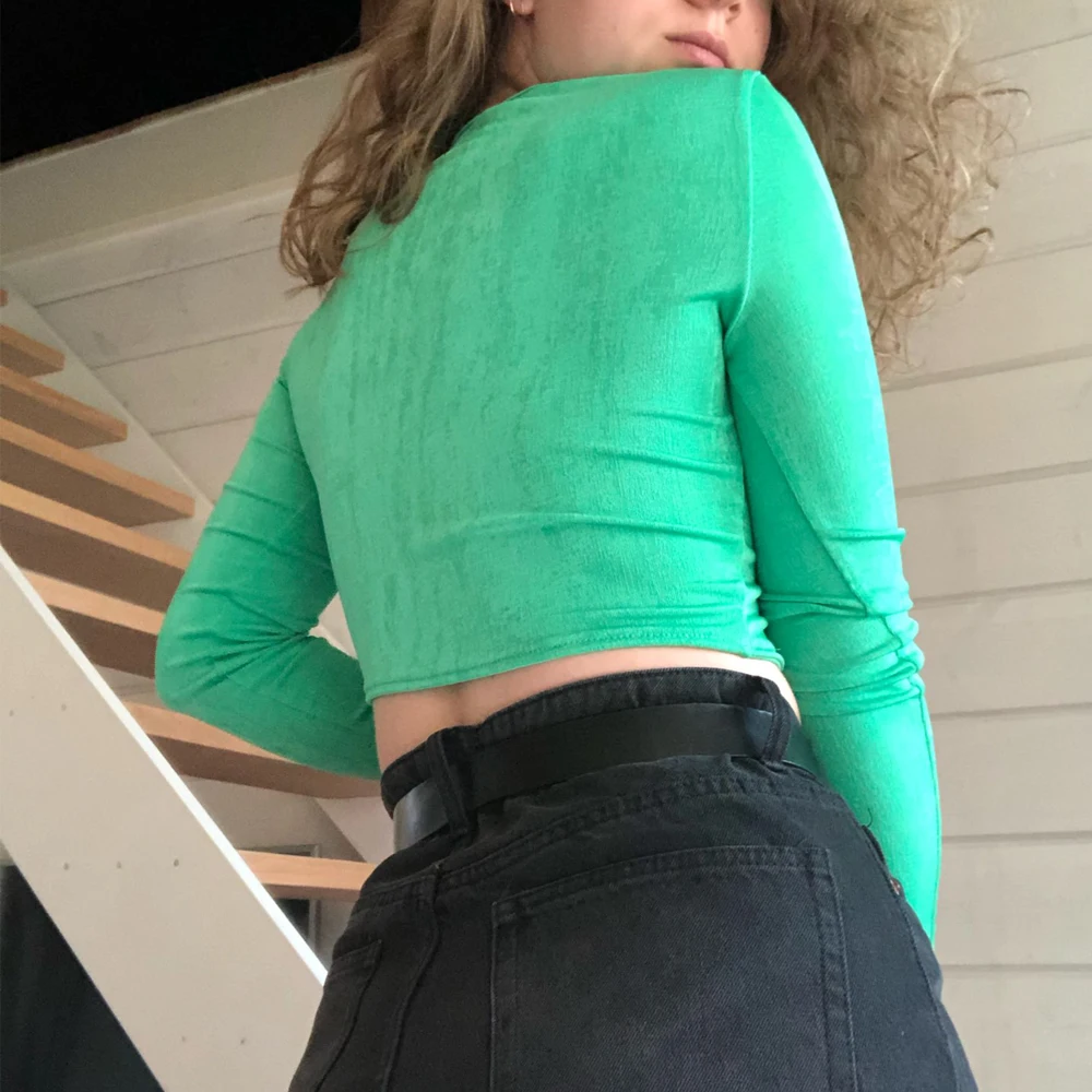 Женский короткий топ на пуговицах, с длинным рукавом, с круглым вырезом, однотонный, приталенный, зеленый, оранжевый