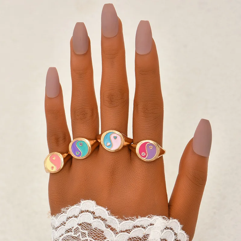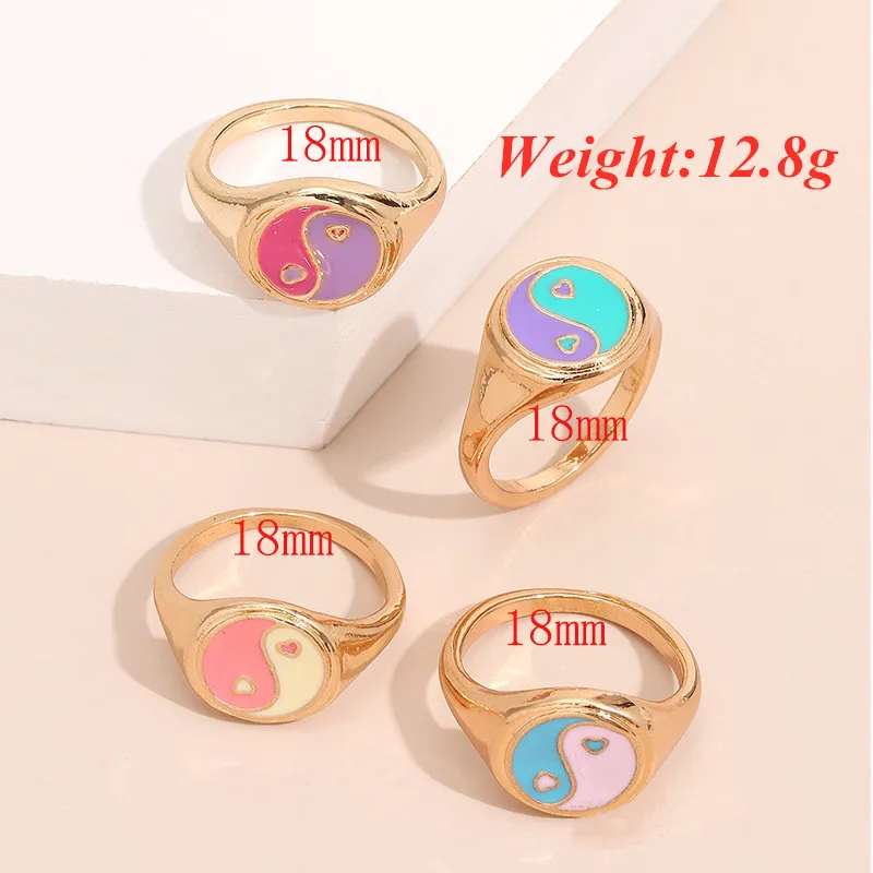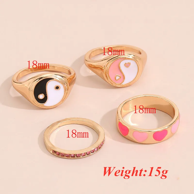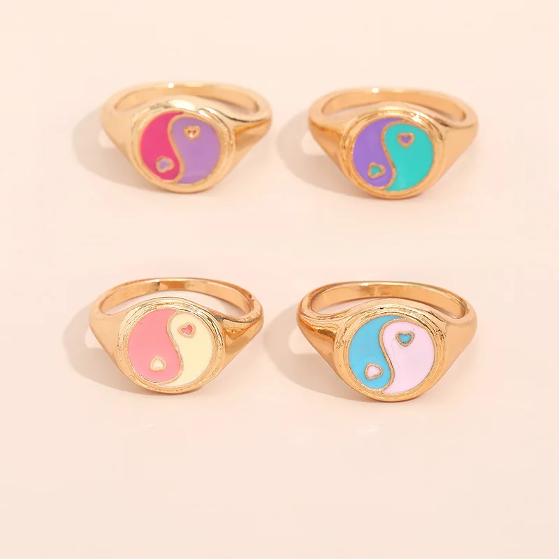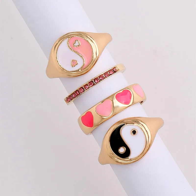 Модные золотые кольца в форме сердца с кристаллами Тай-Чи для женщин, милые кольца, ювелирные украшения для вечеринок