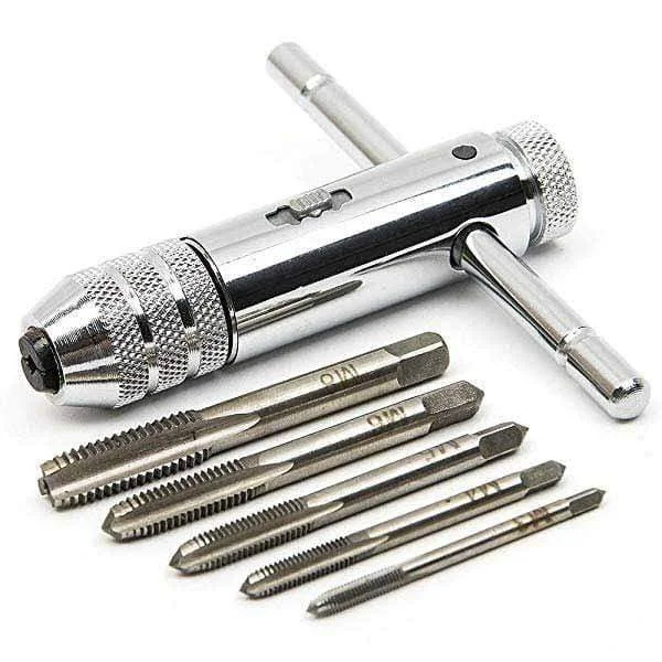 Материал крана гаечный ключ с метрическим краном набор: высокое качество подшипниковой стали, долгое время работы должным образом, хороший резьбонарезной набор с краном и сверла.