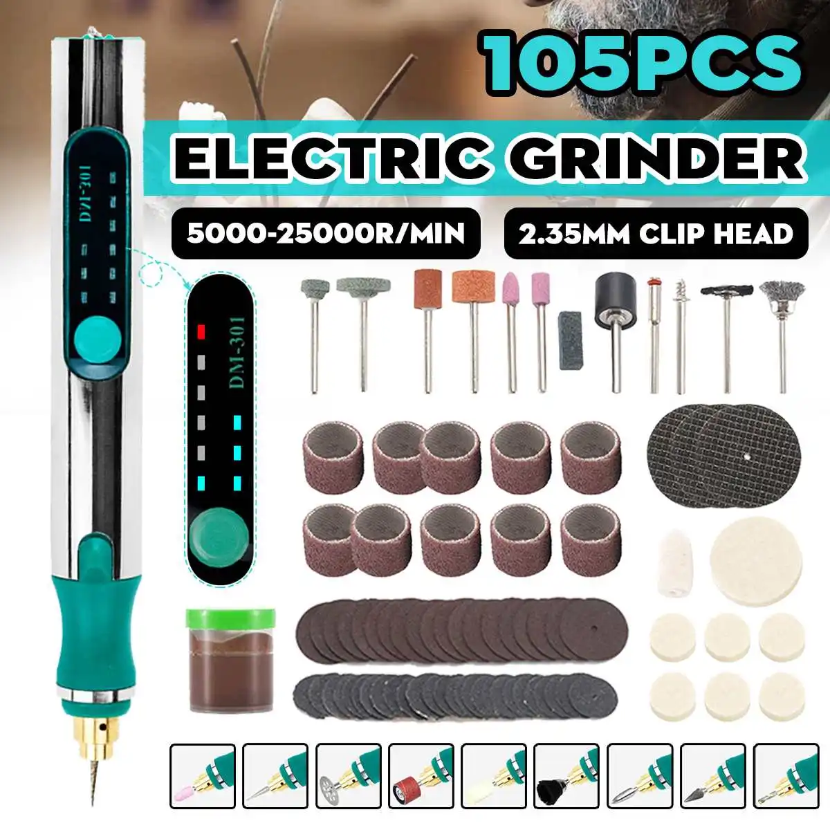 Мини-шлифовальный станок, 25000 об.мин, 3 скорости, зарядка по USB, электрическая дрель, гравировальная ручка, вращающиеся инструменты + 105 шт. шлифовальных аксессуаров