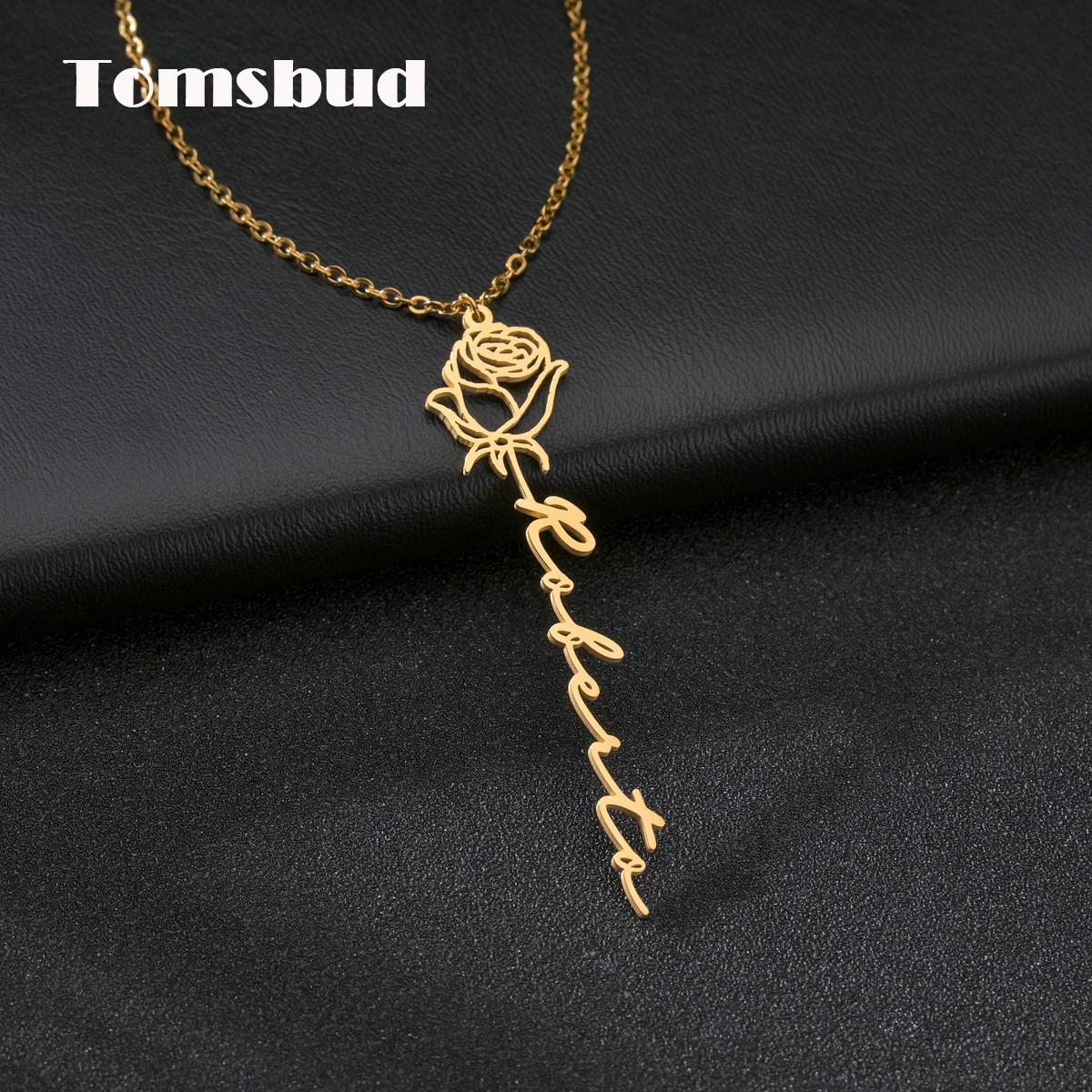 Ожерелье с именем цветка на заказ, подвеска из нержавеющей стали с ...