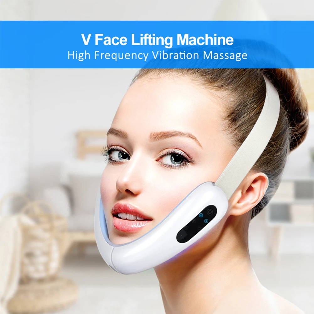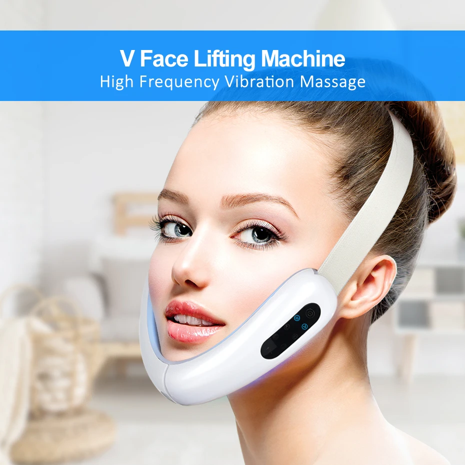 Устройство для лифтинга лица V-образный уход за лицом подбородок V-Line Up подтягивающий пояс машина с красным синим светодиодом фотонная терапия для лица вибромассажер для похудения