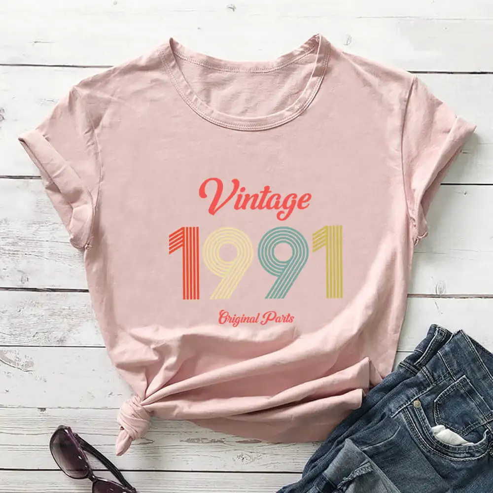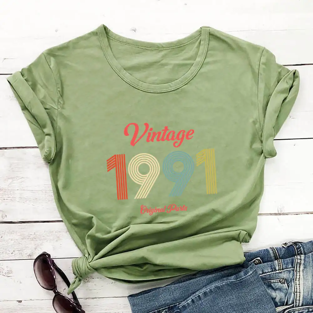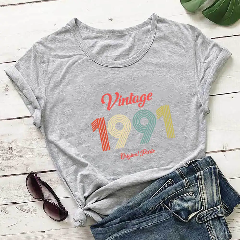 Женская Винтажная футболка из 1991 хлопка, с принтом Hello 30, забавный летний Повседневный Топ с коротким рукавом, футболки для дня рождения, подарка на 30-й день рождения