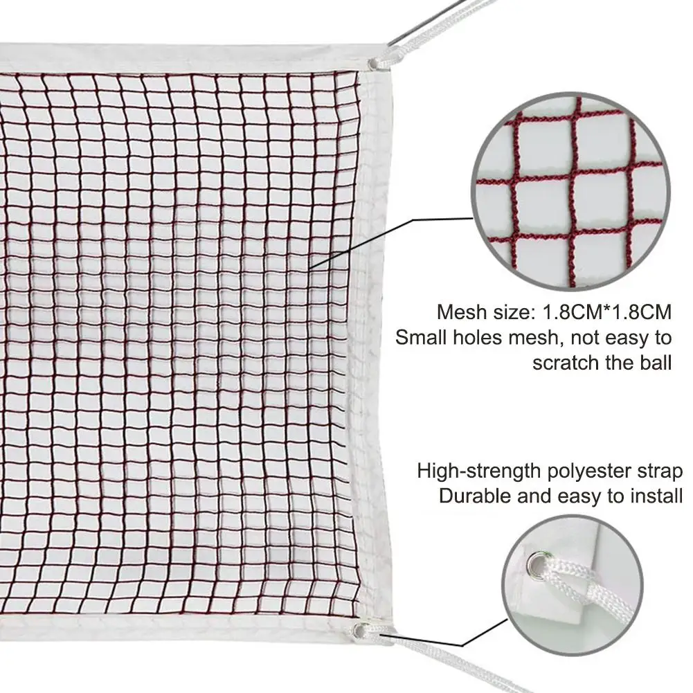 1. Прочная сетка для бадминтона: изготовлена из высококачественного полиэтилена и полиэфирной ткани, эта сетка обернута из Четырехсторонней полиэфирной ткани, двойной пошив, привлекательная и долговечная.