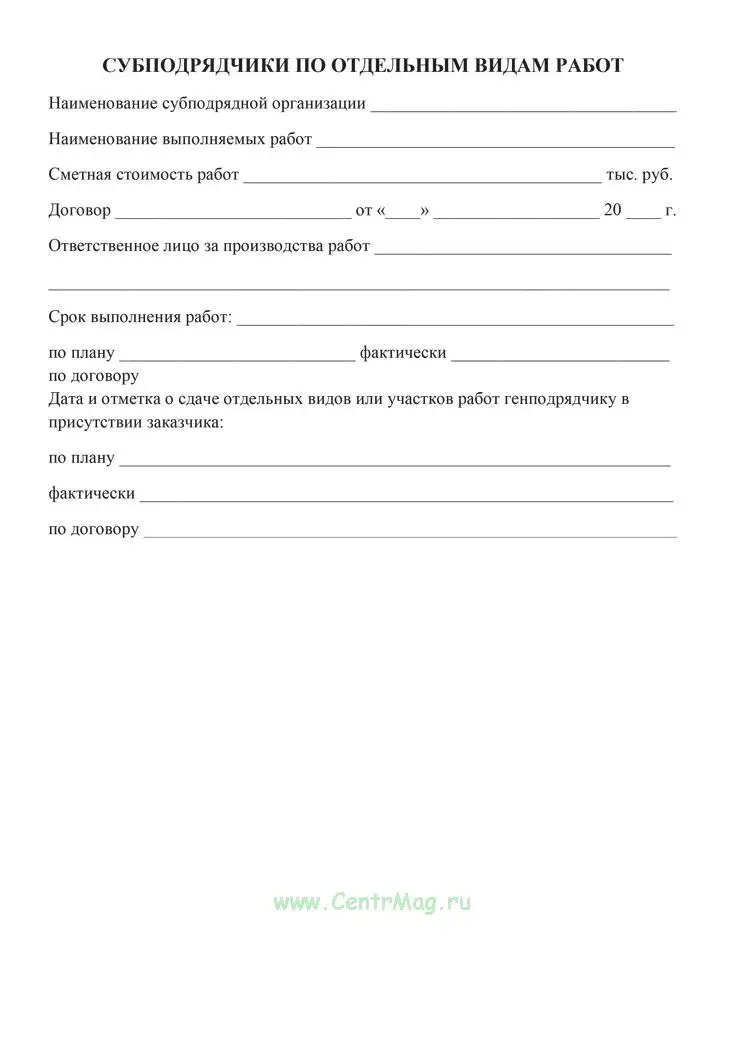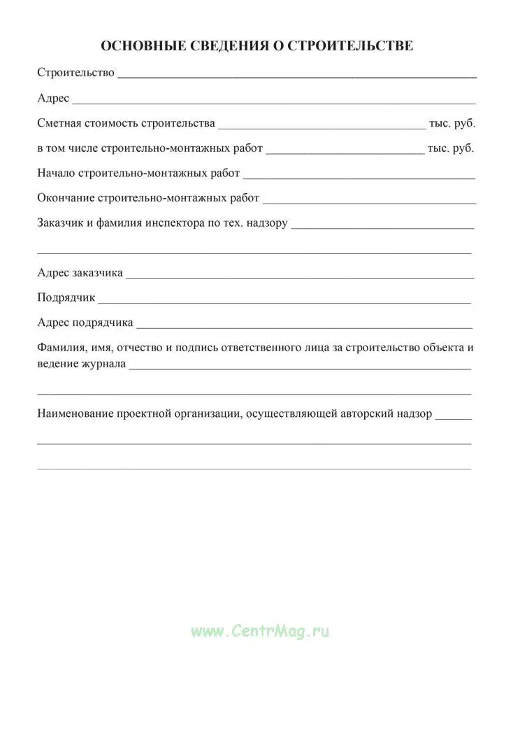 Лицо, ответственное за строительство объекта, ведет журнал работ, заполняя его ежемесячно, начиная с первого дня работы на объекте.
