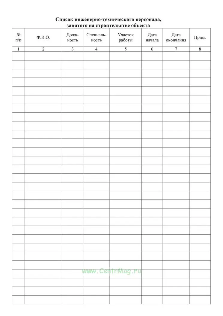 А также составляет список инженерно-технического персонала, занятого на строительстве объекта.