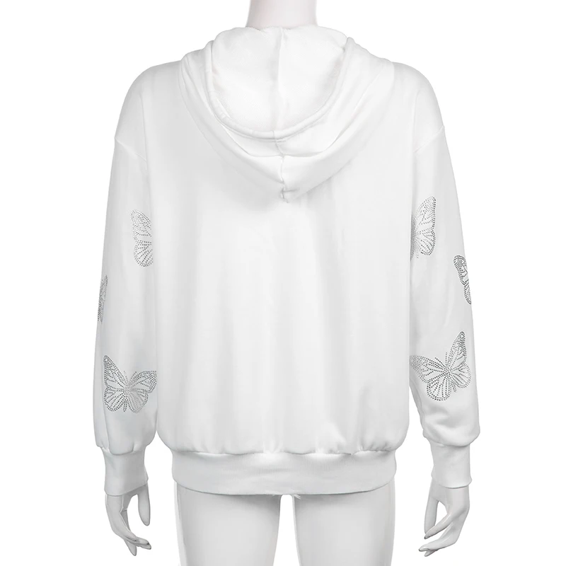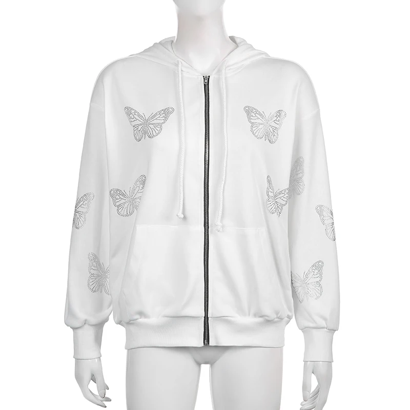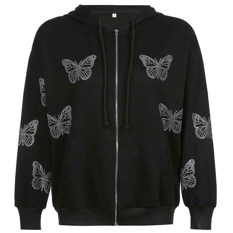Стразы Harajuku толстовки с капюшоном на молнии с принтом бабочек Y...