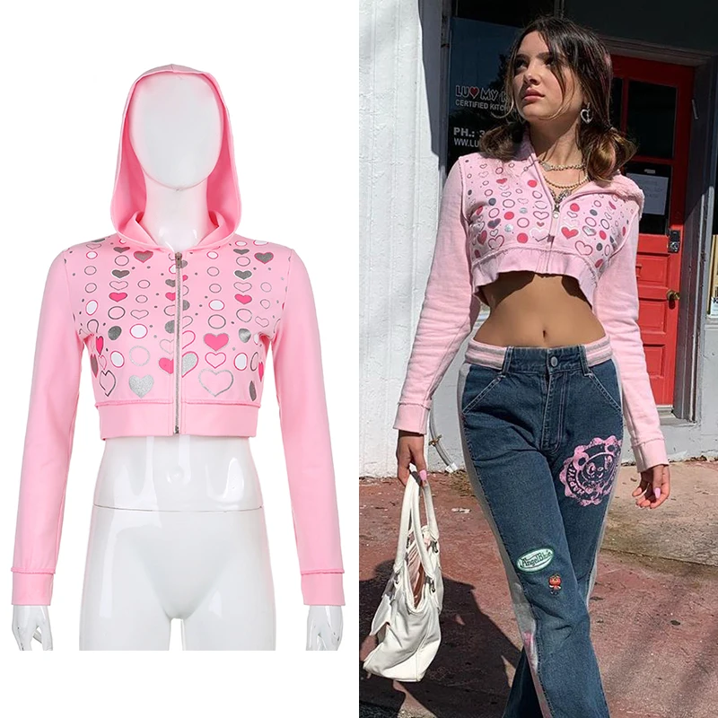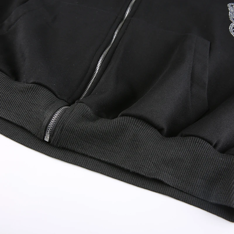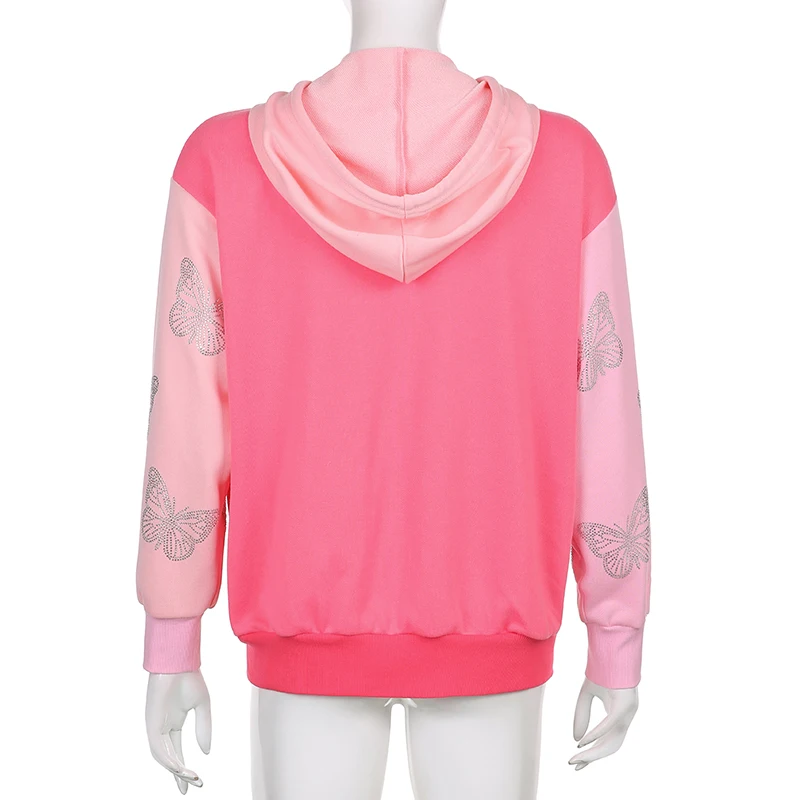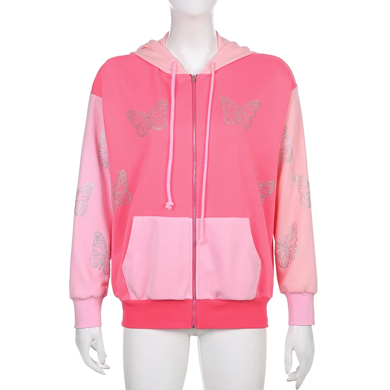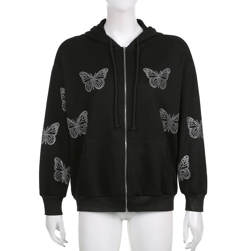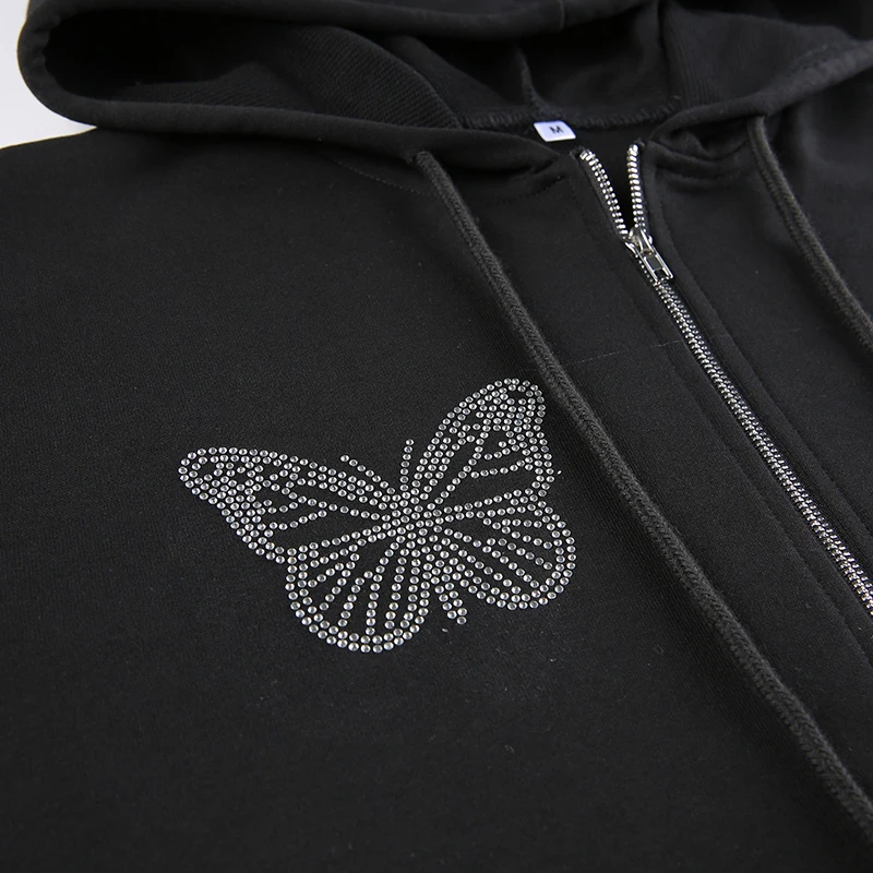 Зимние толстовки y2k с принтом Стразы бабочки на молнии в стиле Хар...
