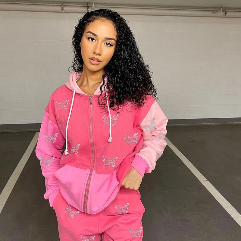 Уличная одежда 90-х Стразы с принтом бабочки спортивные костюмы из ...
