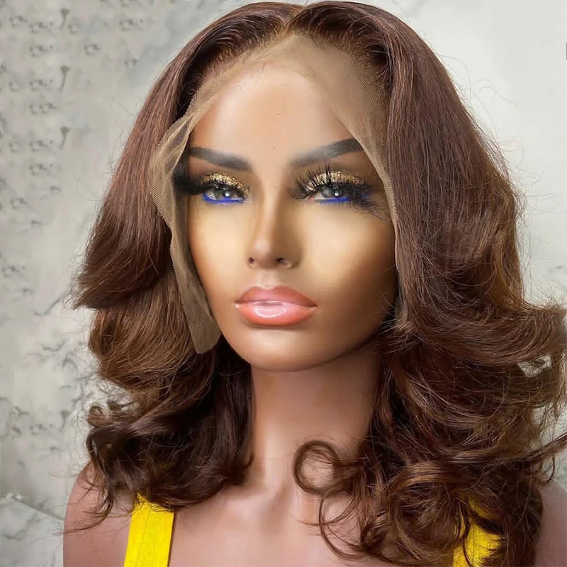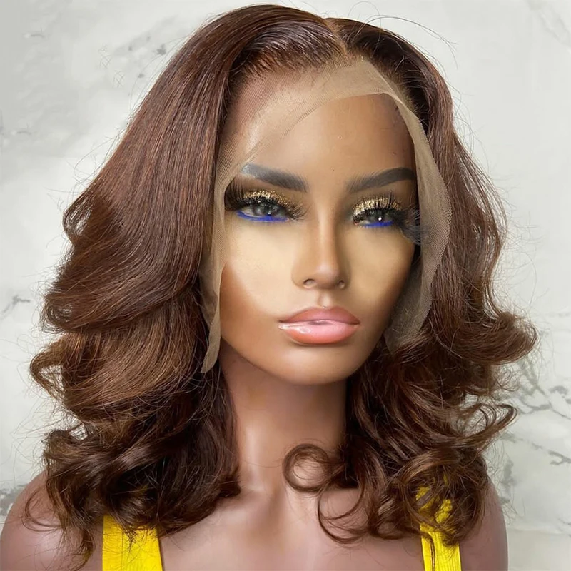 Парик из коричневых человеческих волос 13x 4, парики на шнуровке спереди, волнистые короткие волосы, парик с застежкой 4*4, предварительно выщипанный парик на шнуровке, 250% отбеленные узлы