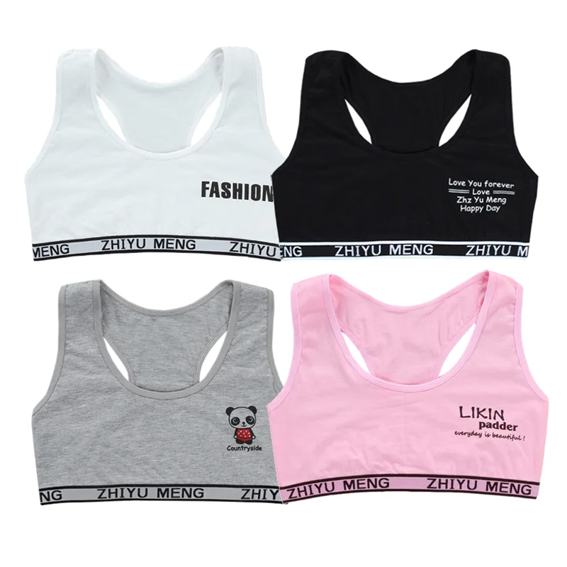 4 шт.партия, хлопковый спортивный бюстгальтер для девочек 8-14 лет