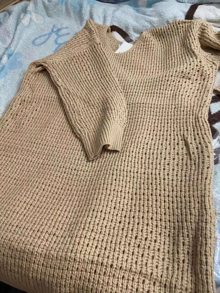 Женское трикотажное платье с V-образным вырезом, длинный свитер сво...
