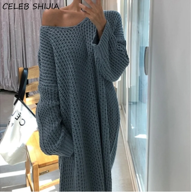 Женское вязаное платье-свитер SHIJIA, элегантное винтажное свободно...