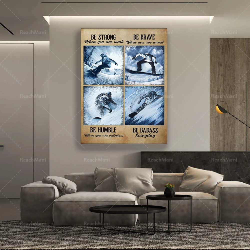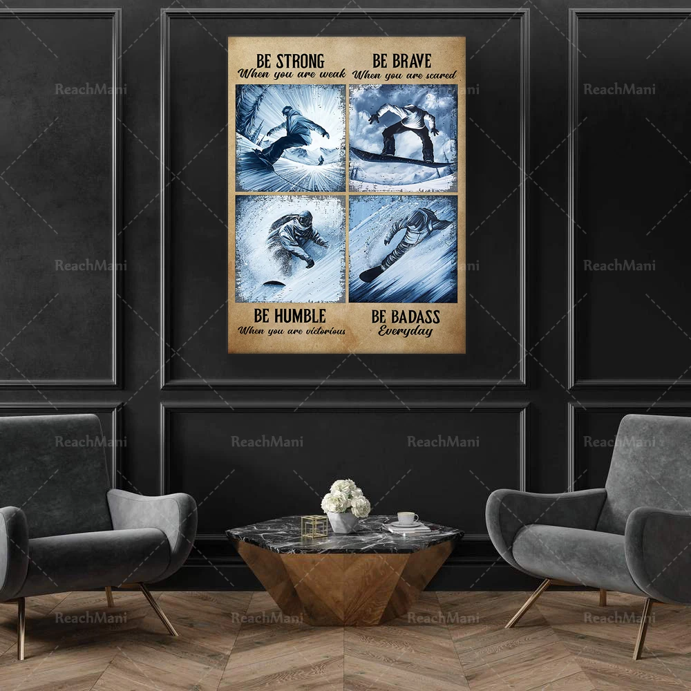 Будьте сильными, скромными, смелыми, дерзкими, дерзкими, мотивирующими плакатами для катания на лыжах, художественной печатью Skier, художественное искусство на холсте для сноуборда для дома