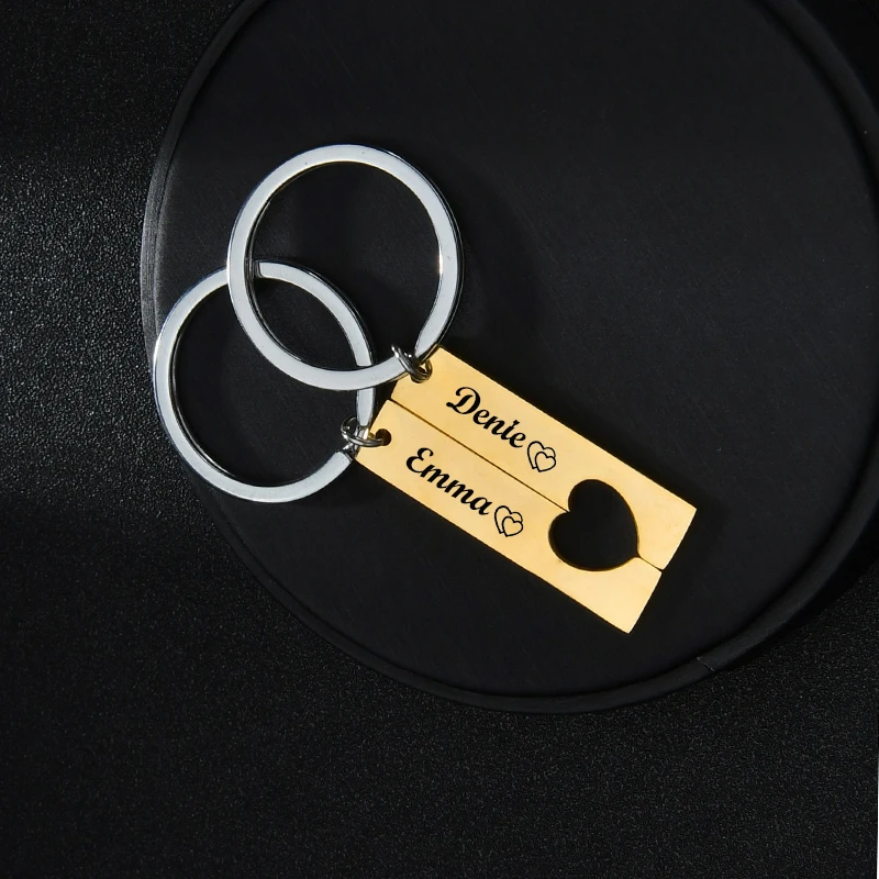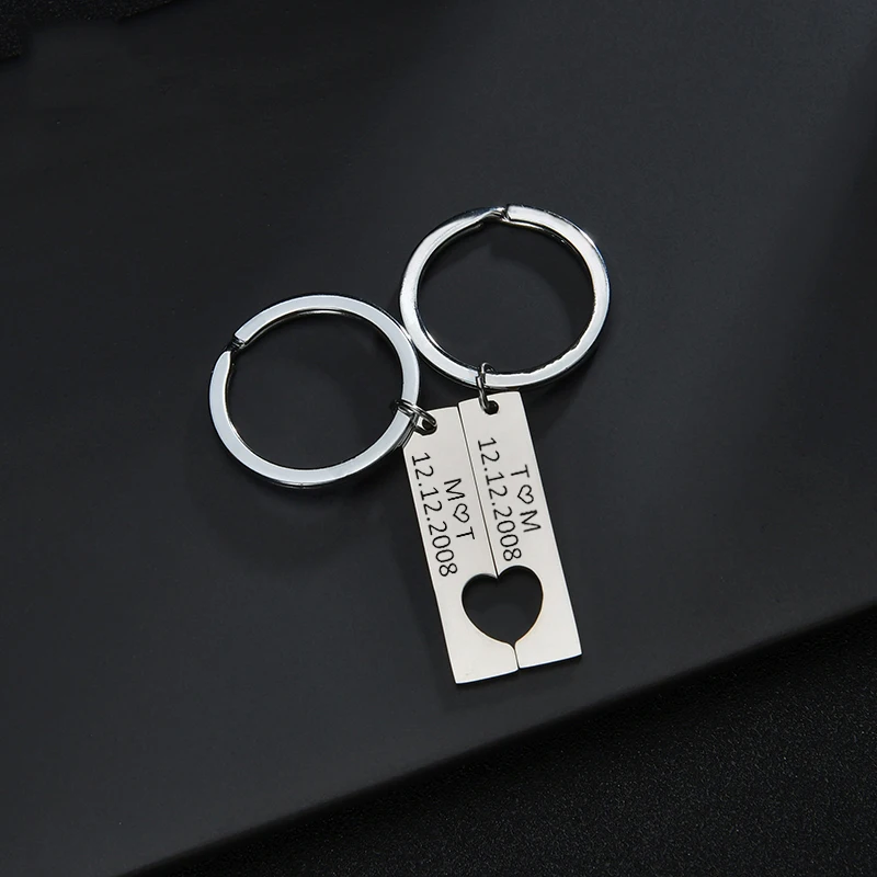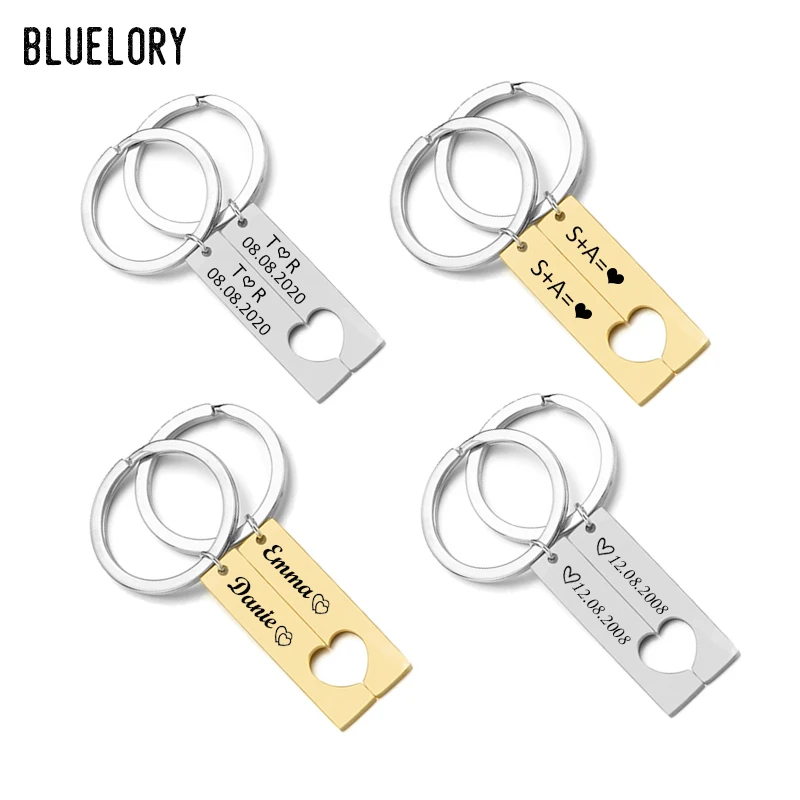 Брелок для ключей Bluelory из нержавеющей стали с выгравированной датой и именем влюбленных, 1 пара