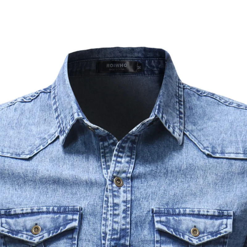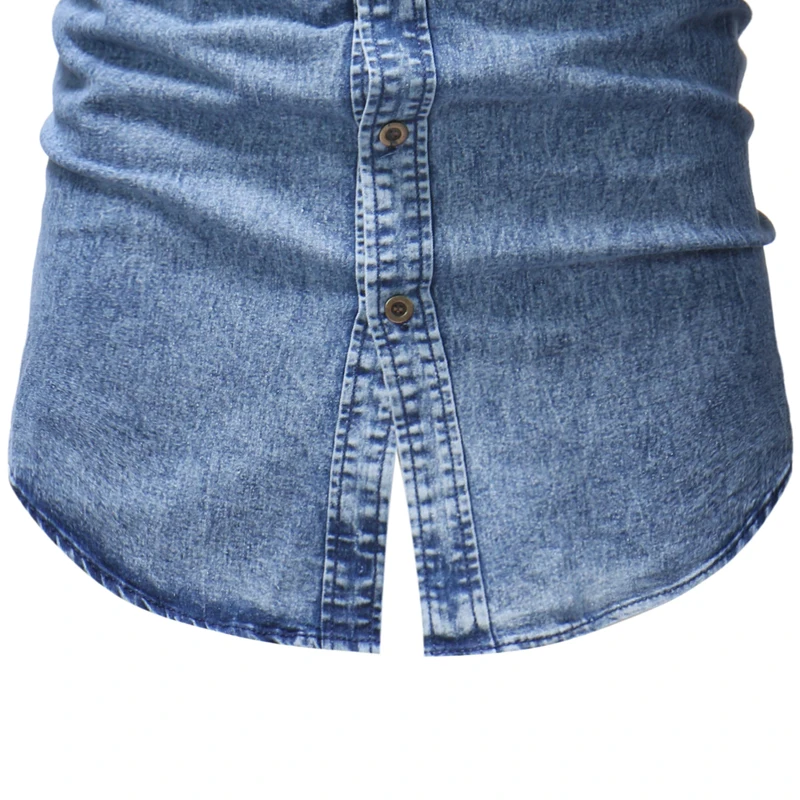 Мужская джинсовая рубашка с потертостями, Классическая Повседневная...