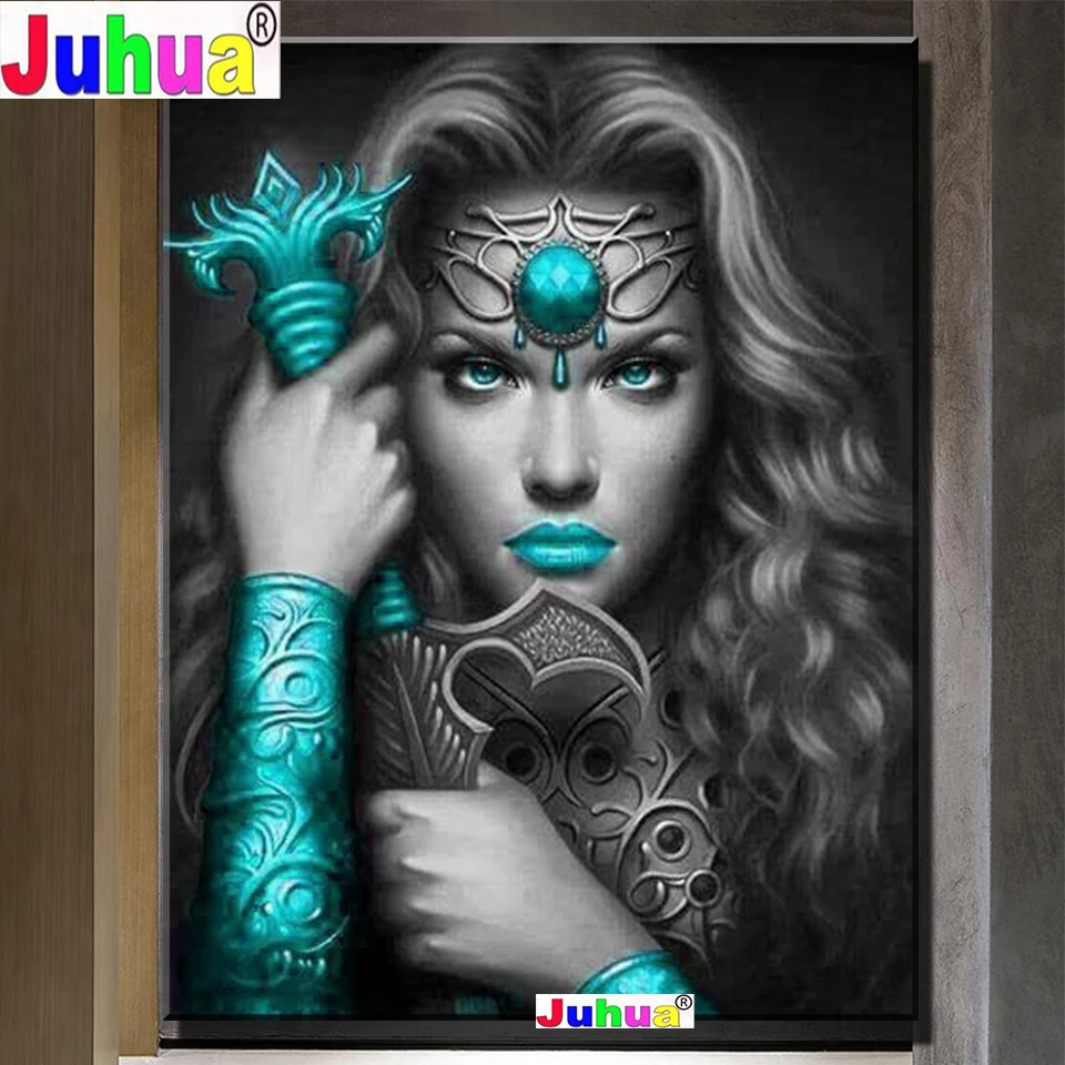 Синий воин девушка алмазная живопись, полный, квадрат, Круглый Алмаз Вышивка мозаика Алмазный diy Ручная работа головоломка Диамант Готическая леди