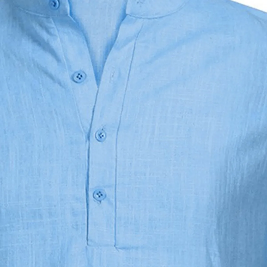 Рубашка Мужская льняная с коротким рукавом, дышащая мешковатая Повседневная сорочка, приталенный силуэт, однотонный хлопковый пуловер, топ, блуза, лето