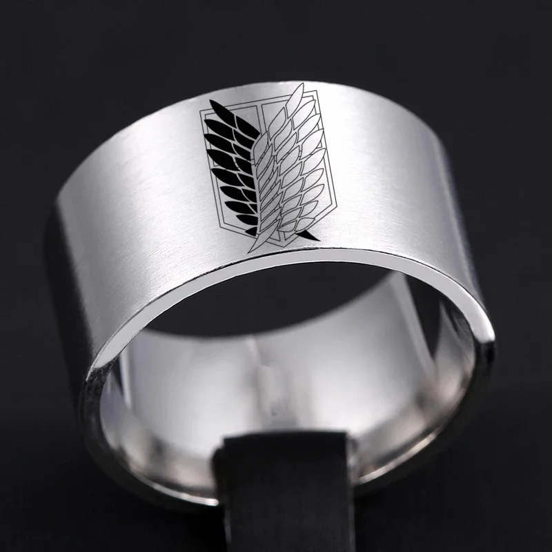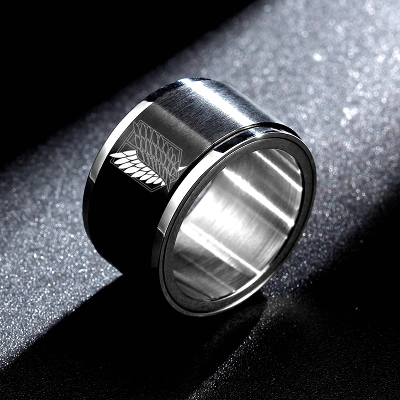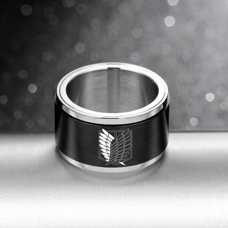 Кольцо из нержавеющей стали, 8 мм, черное, серебристое, с крыльями ...