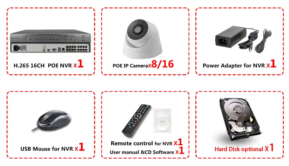 Video16CH POE input/1CH VGA, 1CH HDMI output