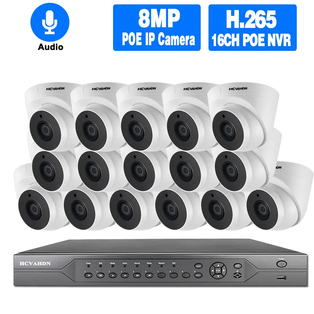 Комплект системы видеонаблюдения H.265 + 16 каналов HD 4K POE NVR 5 МП, домашняя купольная IP-камера наблюдения с аудио для помещений, комплект системы видеонаблюдения