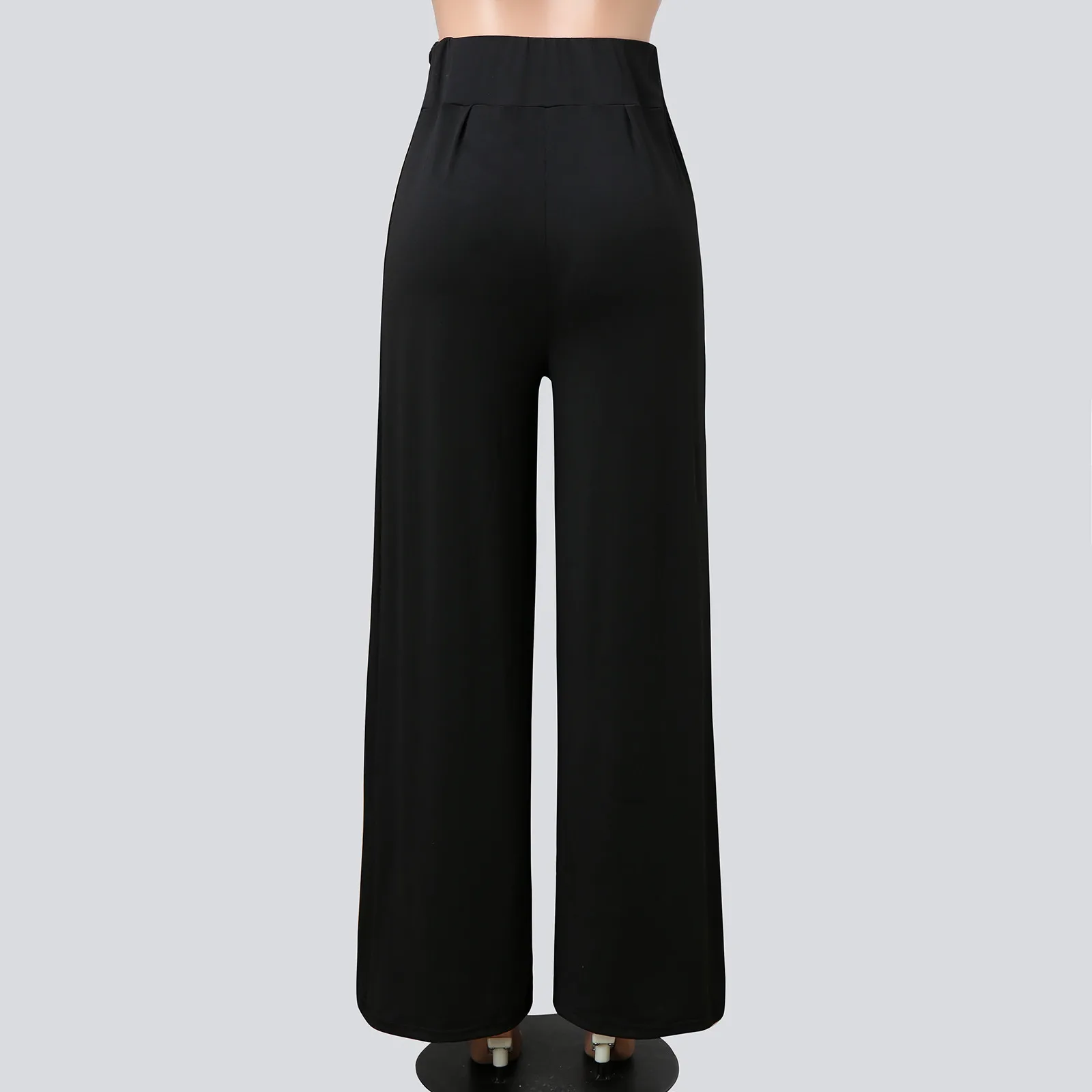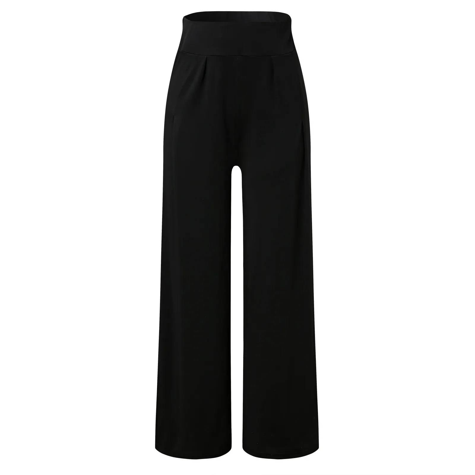 2021 женские брюки с широкими штанинами, весенние однотонные брюки, элегантные женские брюки, Длинные Стильные эластичные повседневные брюки палаццо с высокой талией, новинка