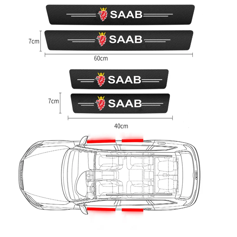 4 шт., наклейки на порог автомобильной двери из углеродного волокна