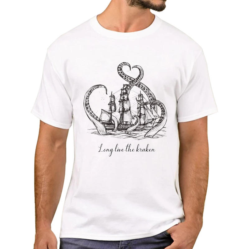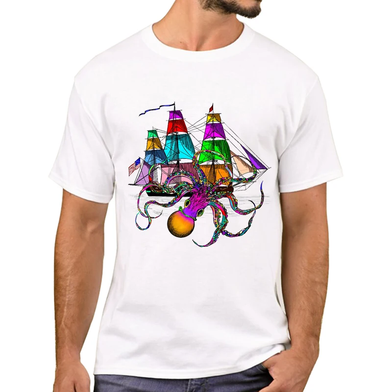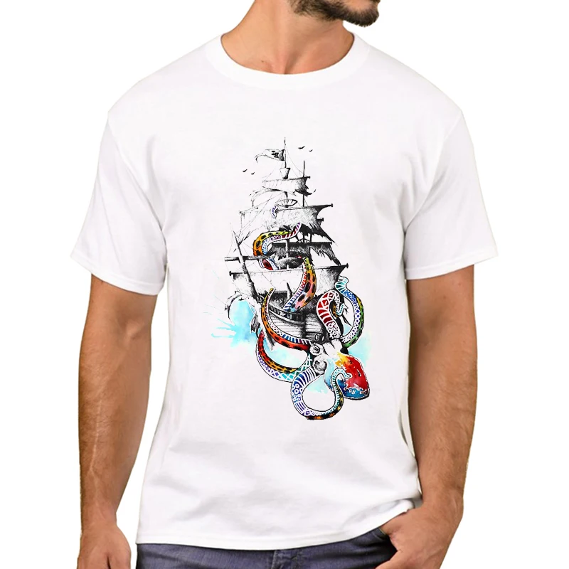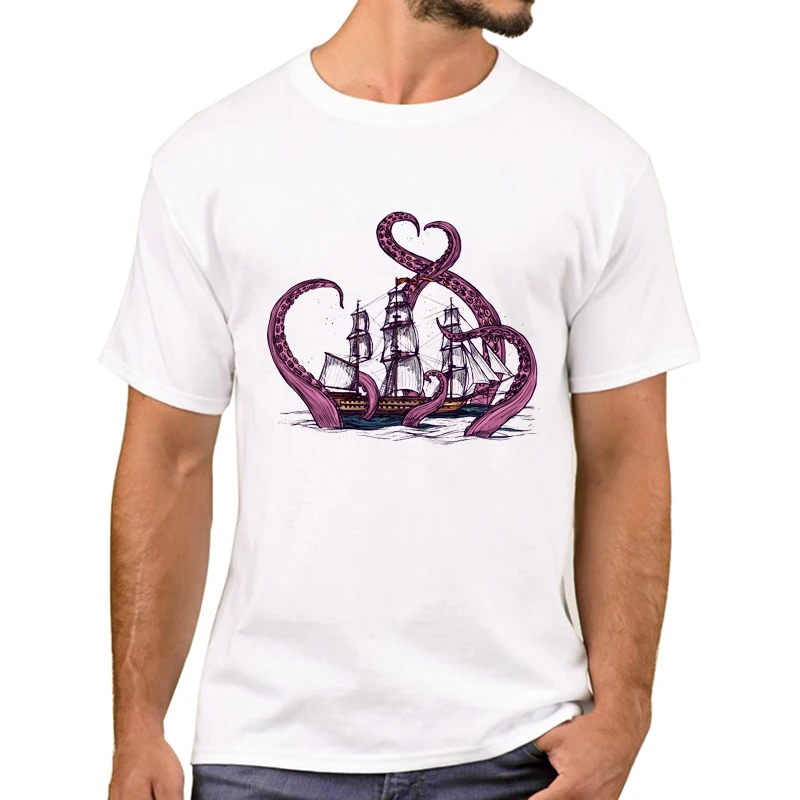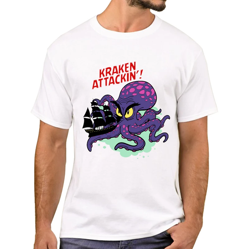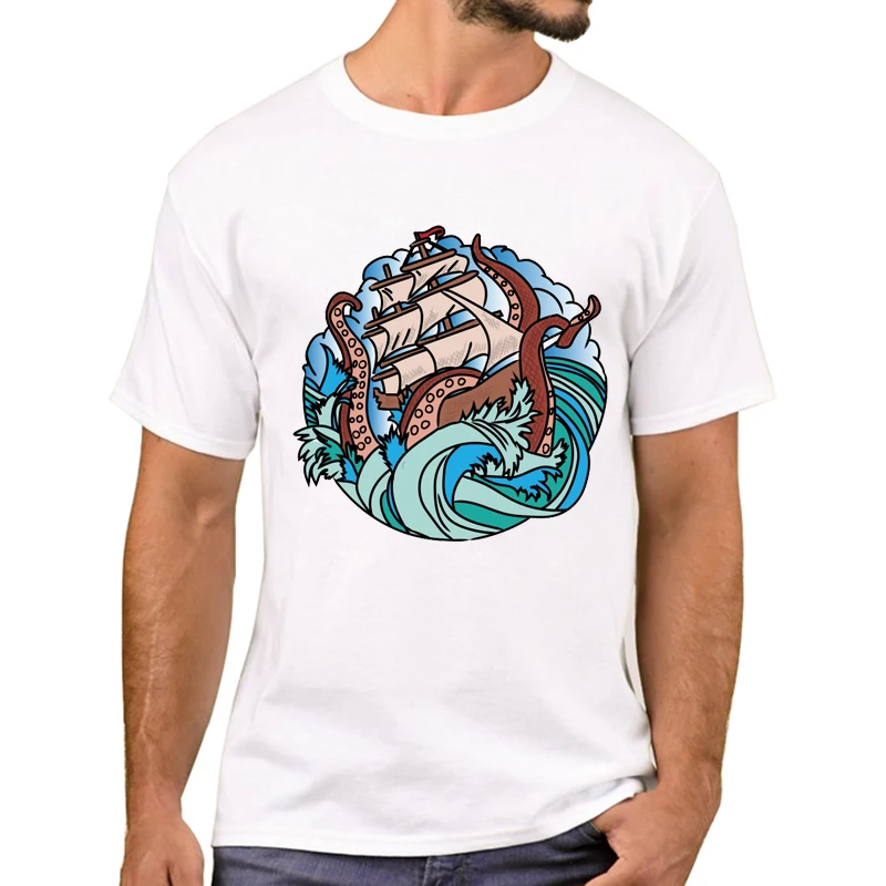 Хипстерская Мужская футболка TEEHUB с принтом корабля осьминога, Забавные футболки с принтом атаки Kraken, футболки с коротким рукавом, крутая футболка