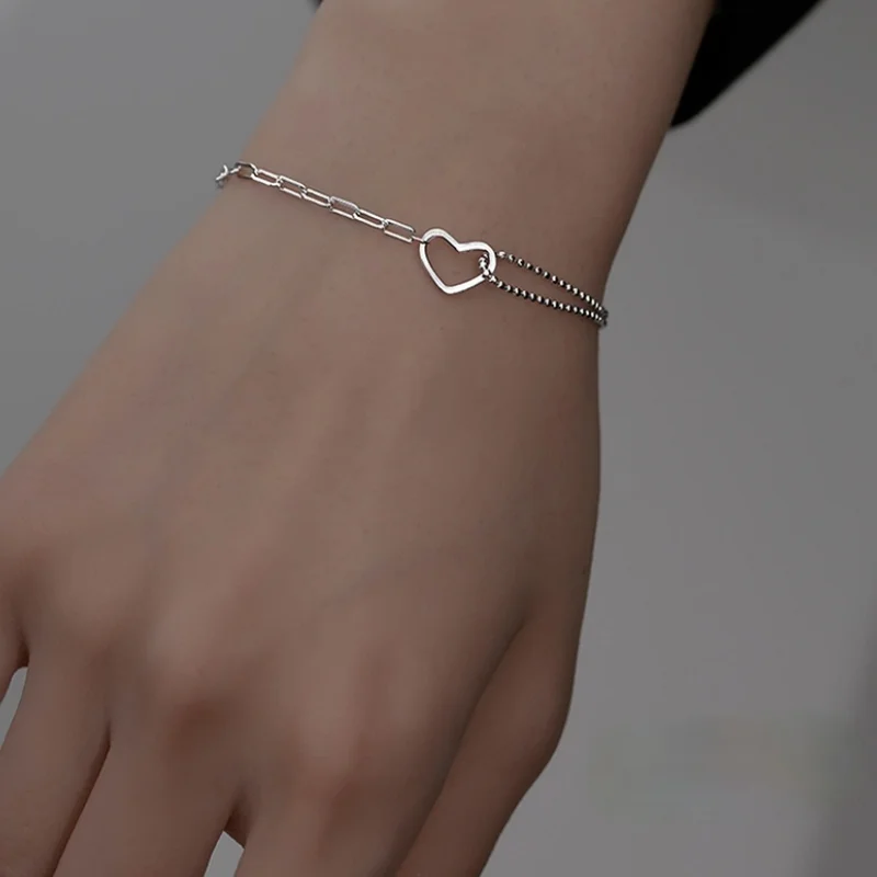 VOQ Серебряный двухслойный браслет с полым сердцем для женщин милая...