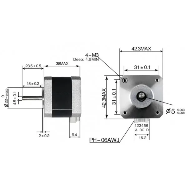 Угловой шаг: 1,8 °±0. 09 ° (200 шагов на оборот)