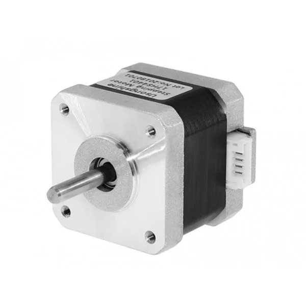 Данный шаговый двигатель работает от драйвера моторов (например mx1508), при этом не смотря, что номинальное напряжение 3.6 он может работать и от 5В и от 24В